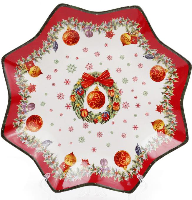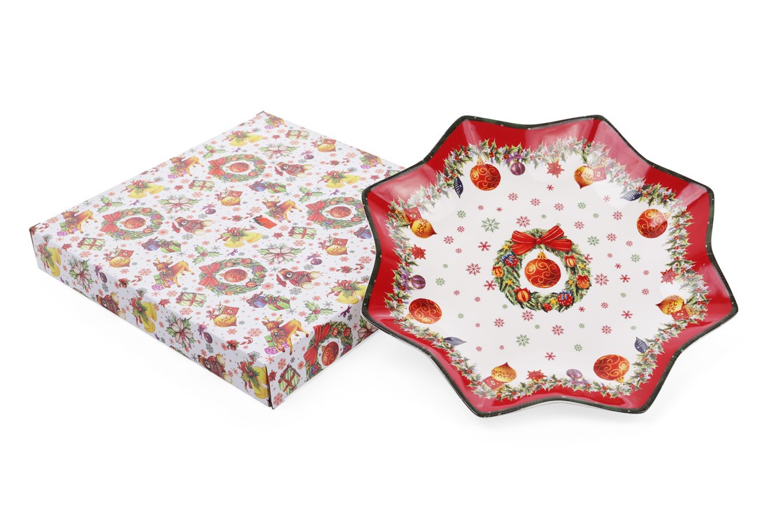 Блюдо фарфоровое звездочка "С рождеством" 30,5 см