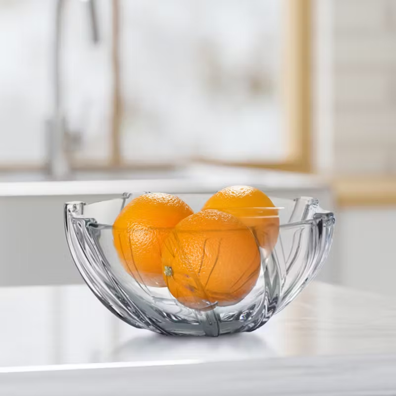 Завдяки міцному чеському склу та класичній круглій формі воно зручне для подачі фруктів, закусок, печива чи солодощів. Внутрішні грані страви заломлюють світло, створюючи гарний об'єм та підкреслюючи свіжість вмісту. Поверхня гладка, не вбирає запахів і легко миється.