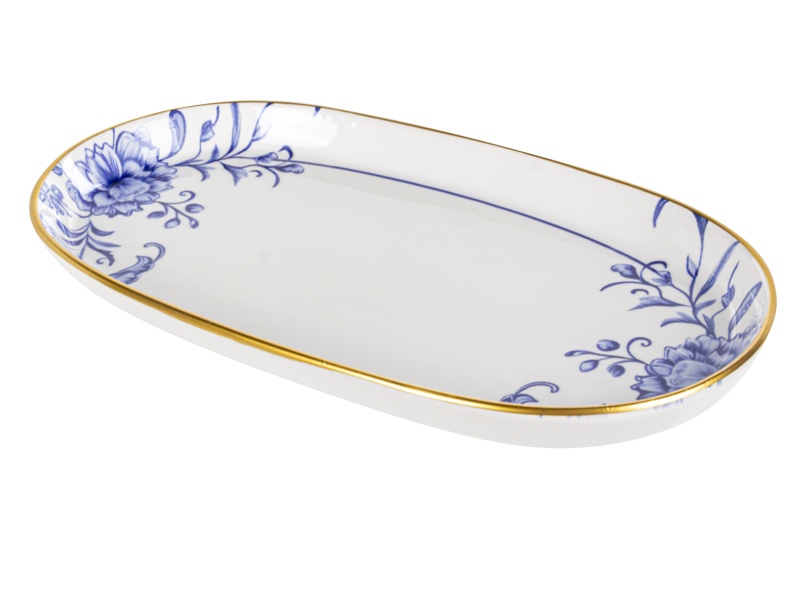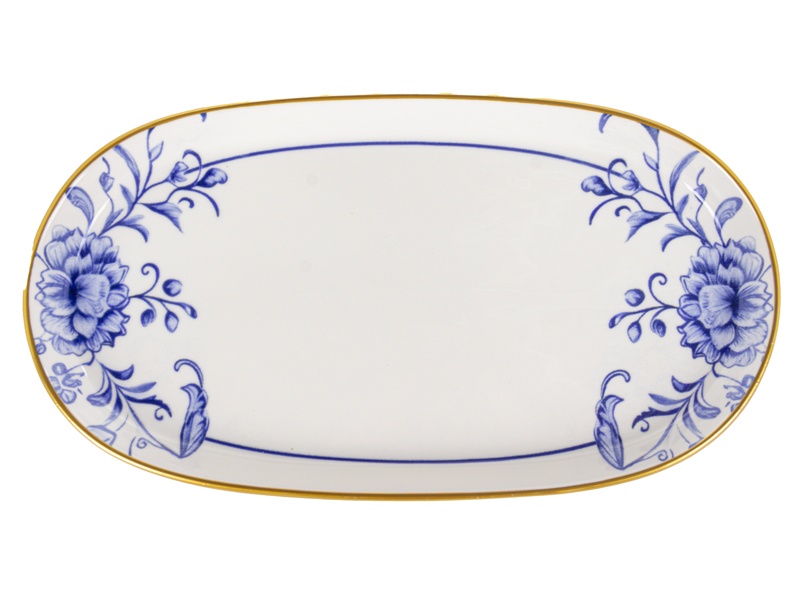Блюдо керамическое с рисунком Голубая Роза 32*17 см