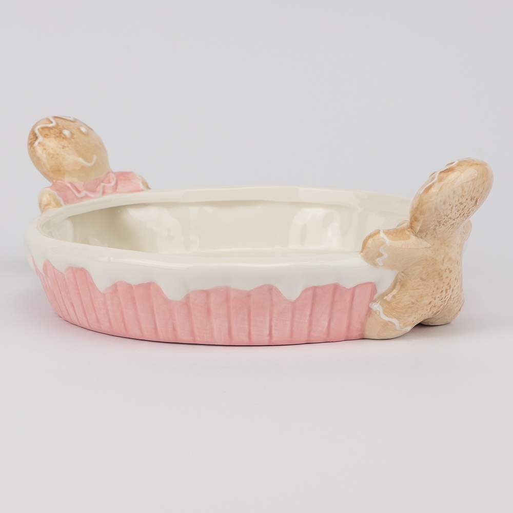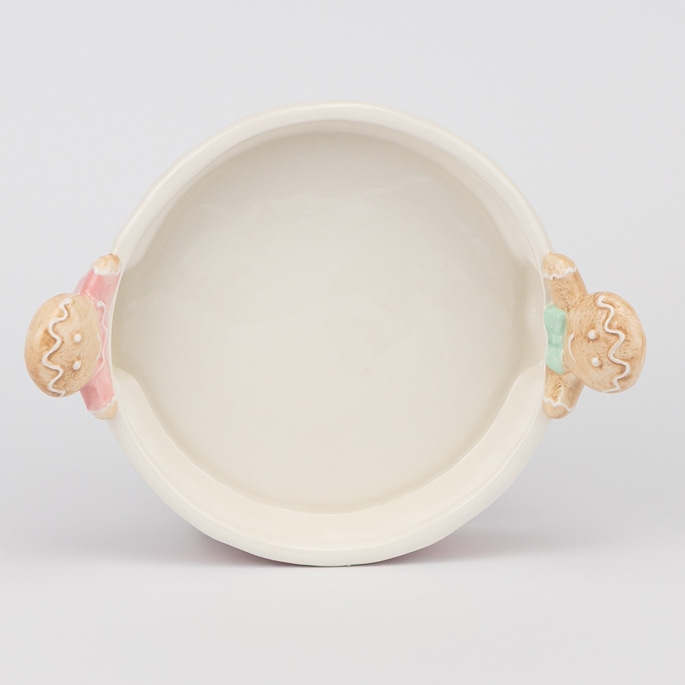 Коллекция «Пряники» — это настоящая находка для тех, кто любит уют и красивые детали на праздничном столе. Эти сервировочные блюда выполнены из прочной керамики, которая хорошо держит форму, устойчива к сколам и легко моется. Глянцевая глазурь подчеркивает яркие цвета и делает каждое изделие по-настоящему нарядным. Милые фигурки пряничных человечков, расположенные по краям, создают ощущение тепла и веселья, будто сам аромат свежей выпечки витает вокруг.