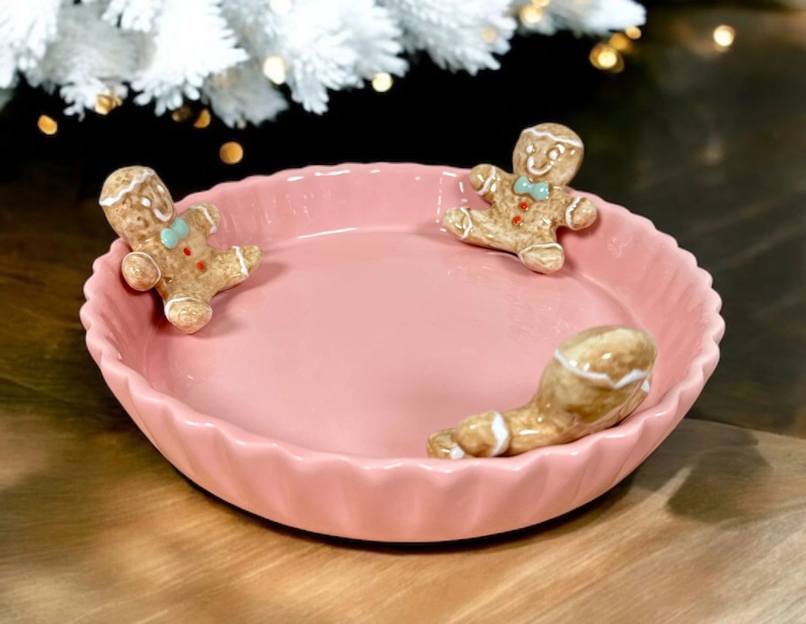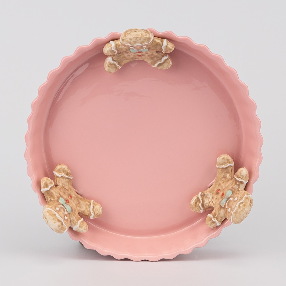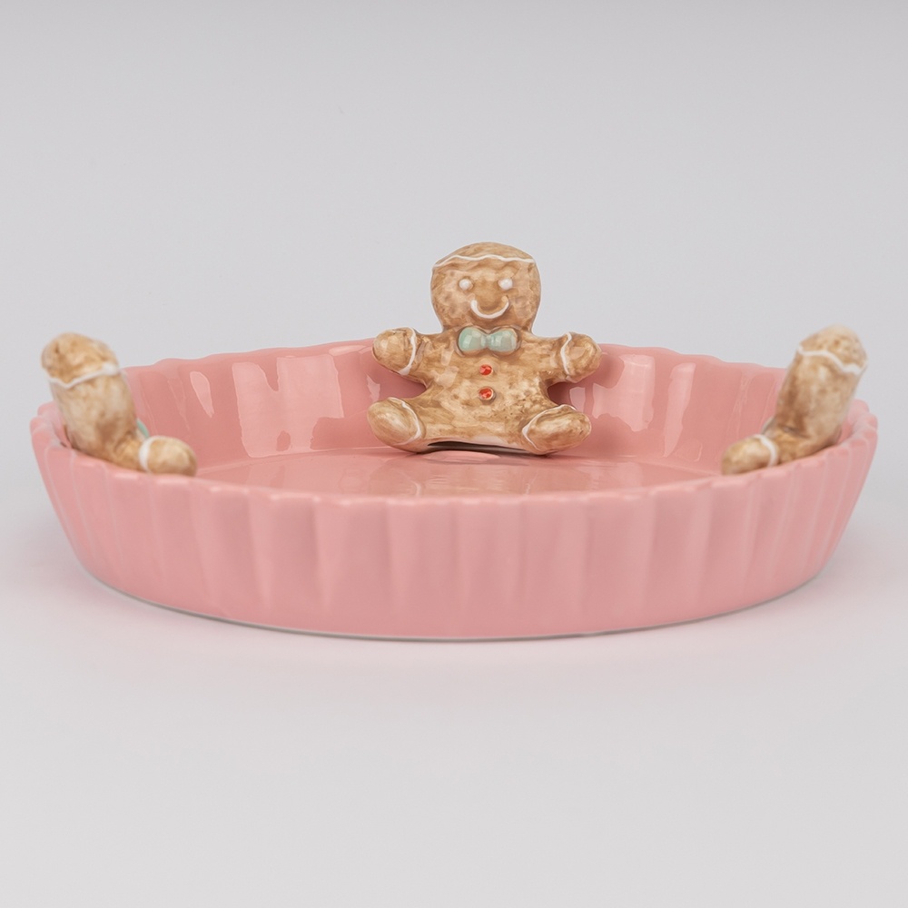 Блюдо керамическое сервировочное розовое Пряники 23 см