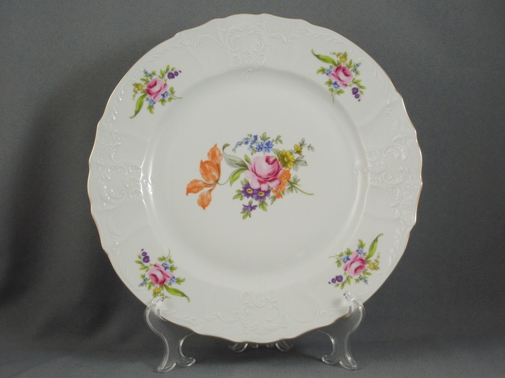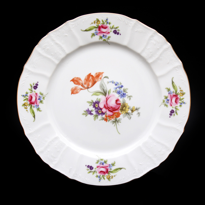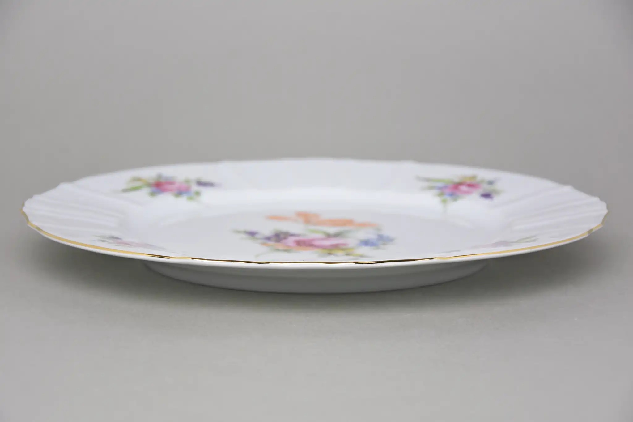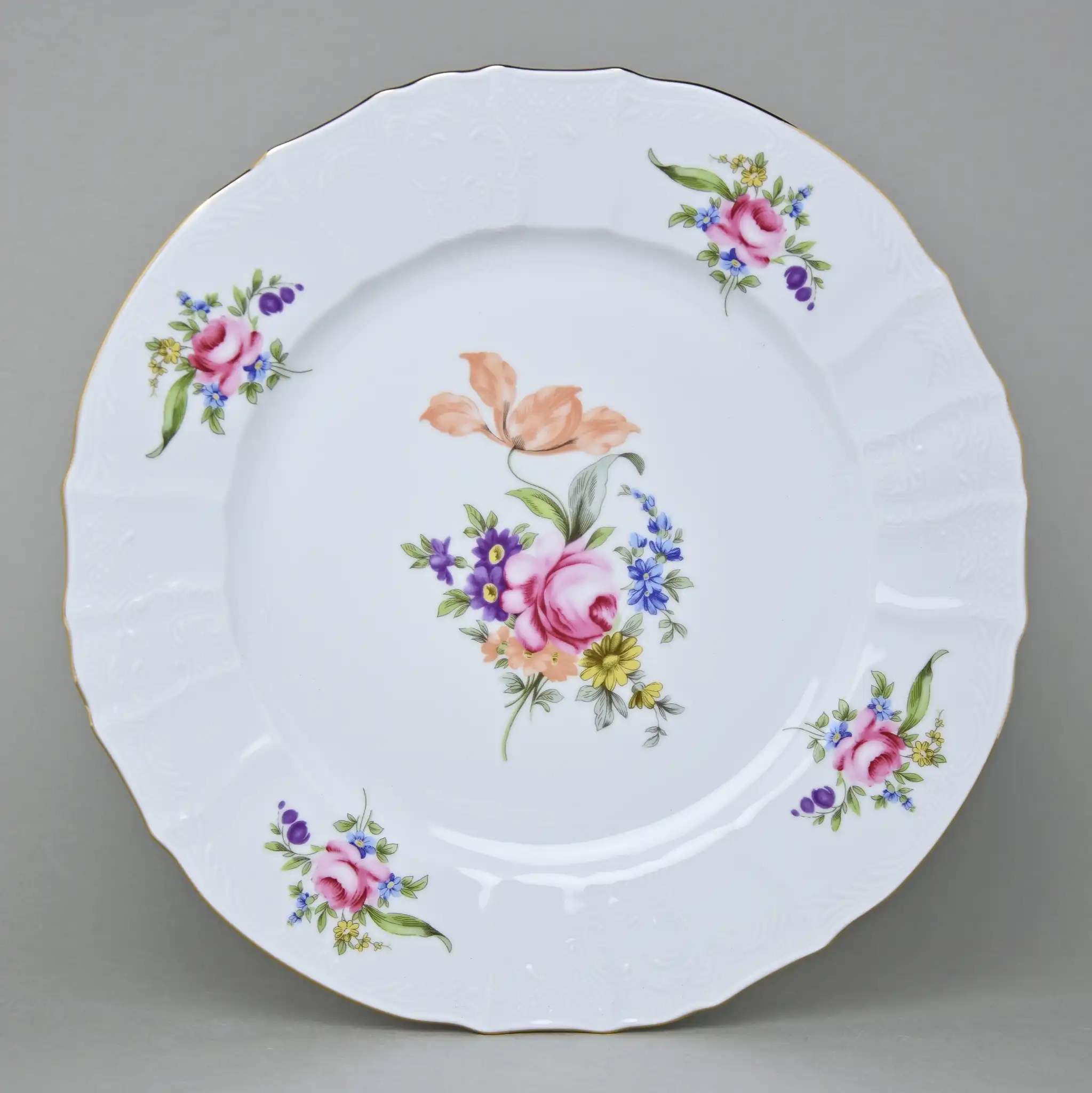 Блюдо круглое мелкое цветное Thun Bernadotte Мейсенский Букет с золотым ободком 30 см
