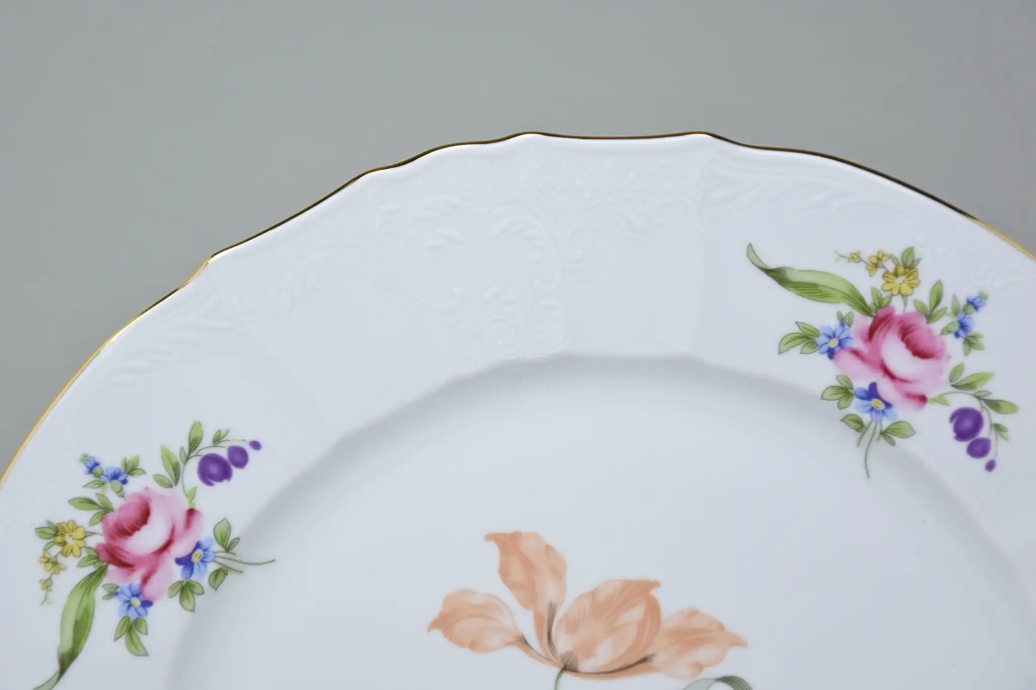 Вдохните аромат цветущего лета с коллекцией блюд Thun Bernadotte «Мейсенский букет»! Каждое изделие словно оживляет классическую европейскую живопись — изящные цветочные композиции, яркие, будто только что собраны в саду старинного имения. Нежные розы, фиалки, маки и полевые бутоны украшают гладкую поверхность белоснежного фарфора, превращая блюдо в декоративную жемчужину на вашем столе.