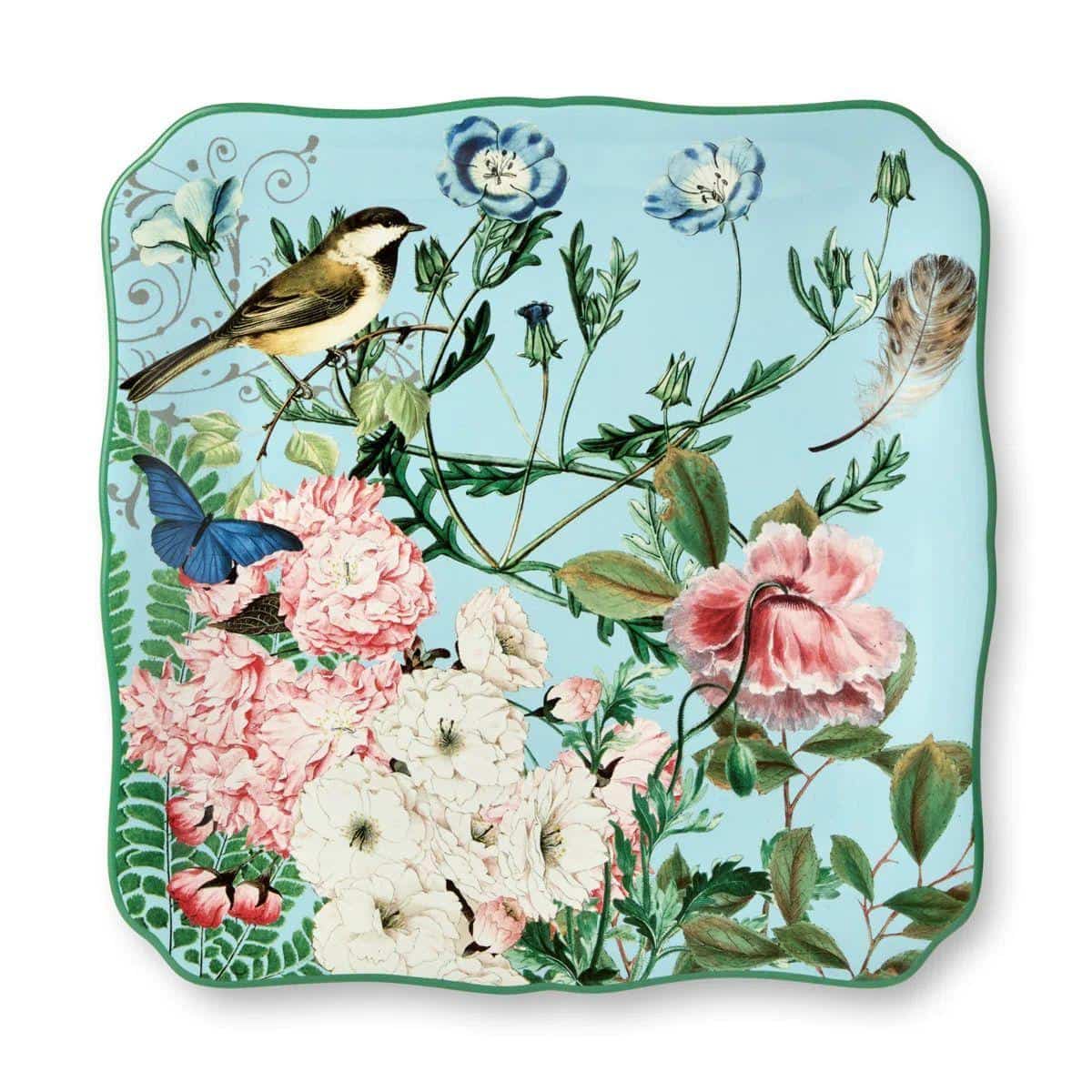 Квадратне блюдо «Флора» — це справжній арт-об’єкт, який перетворює сервірування на витвір мистецтва. Ніжні квіти, пташки та метелики на блакитному тлі створюють атмосферу весняного саду прямо на вашому столі. Розмір 32×32 см дозволяє використовувати блюдо для подачі фруктів, десертів, закусок або сирної тарілки. Кераміка покрита зносостійкою глазур’ю, завдяки чому блюдо довго зберігає яскравість фарб і легко миється. Тонкий рельєфний край надає виробу елегантності та вишуканості. Якщо ви любите естетику і хочете, щоб гості захоплювалися сервіруванням — це блюдо стане вашим ідеальним вибором. Не рекомендується чистити засобами з абразивними частинками.