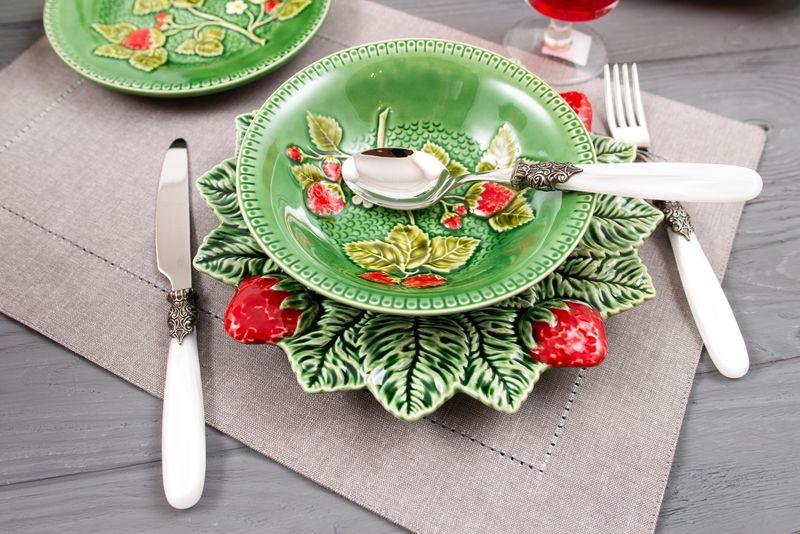 БрендBordallo Страна производстваПортугалия КоллекцияКлубничка Количество предметов1 МатериалКерамика Вид тарелкиТарелка Наличие декораТарелка с узором Диаметр посуды33 см