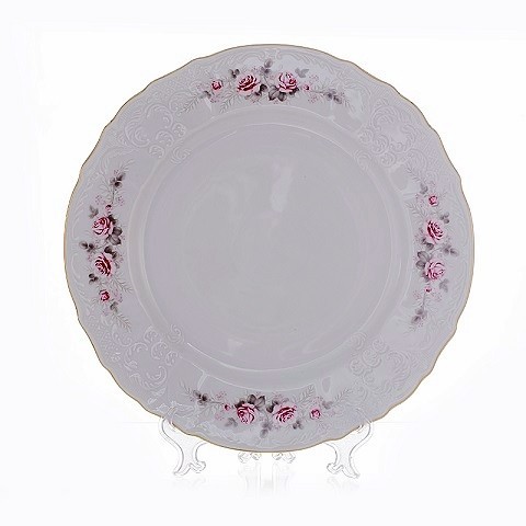 Блюдо мелкое фарфор Бледная роза-золотая кайма 32 см