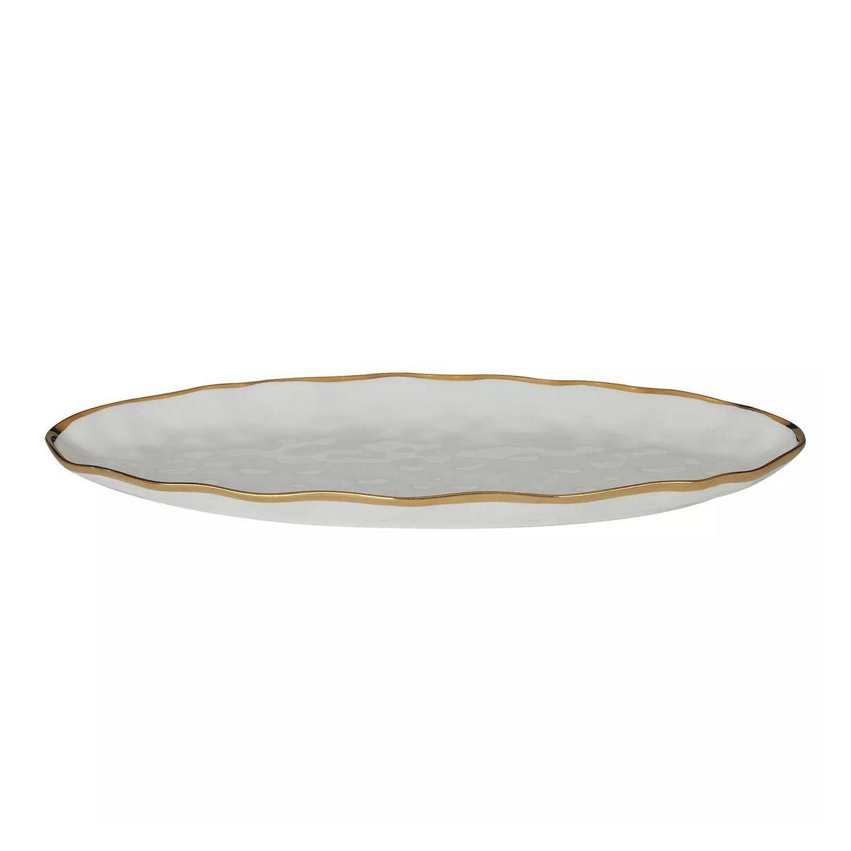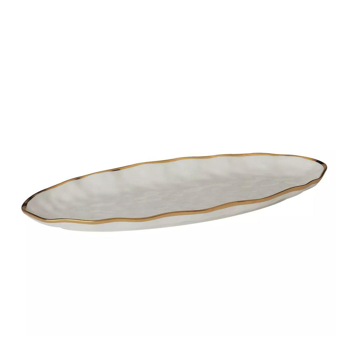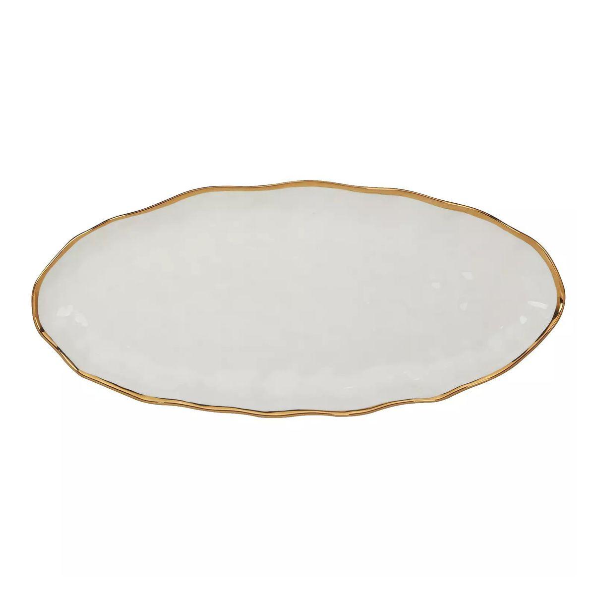 Блюдо овальне біле довге з золотим кантом кераміка Regency Gold