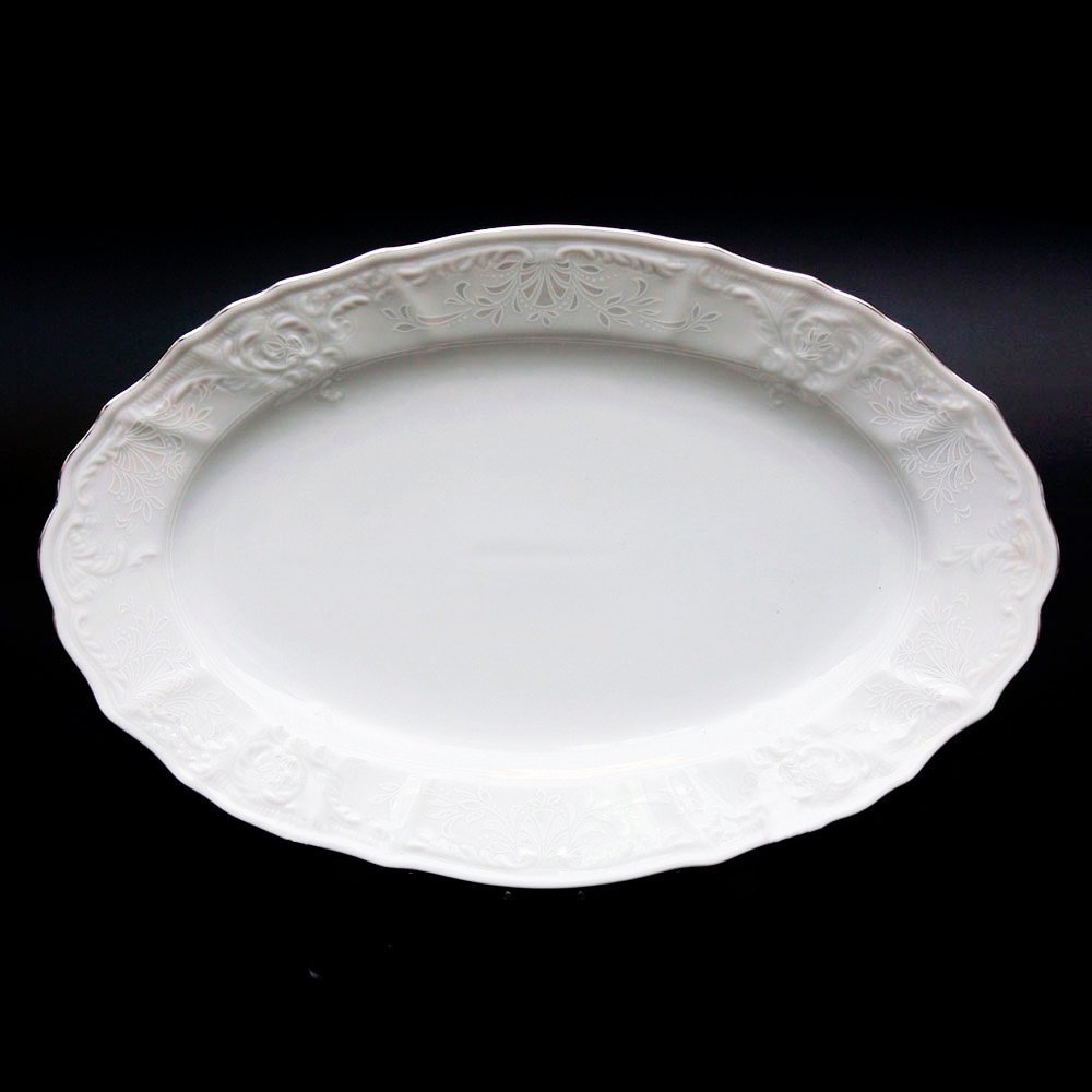 Блюдо овальне біле візерункове Thun Bernadotte Наречена з платиновим кантом 24 см