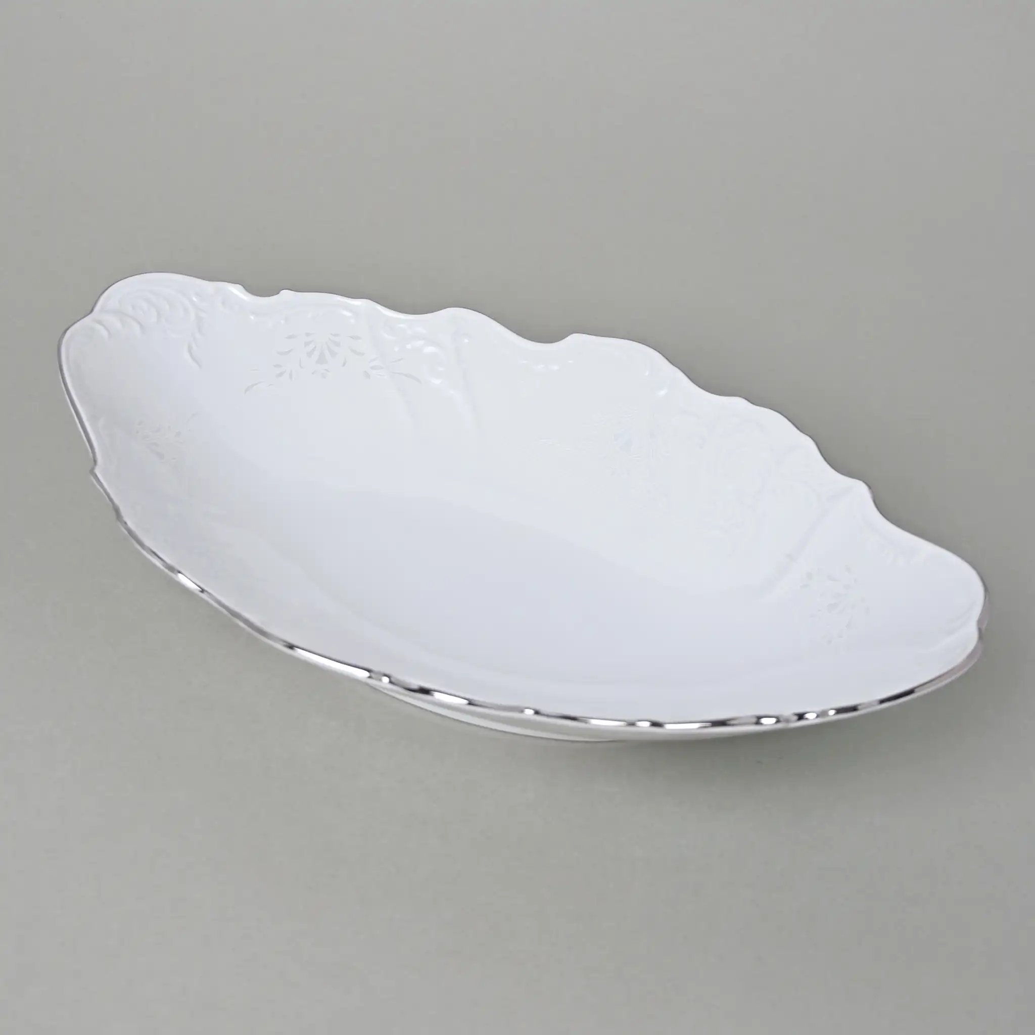 Блюдо овальное белое узорчатое Thun Bernadotte Невеста с платиновым кантом 34 см