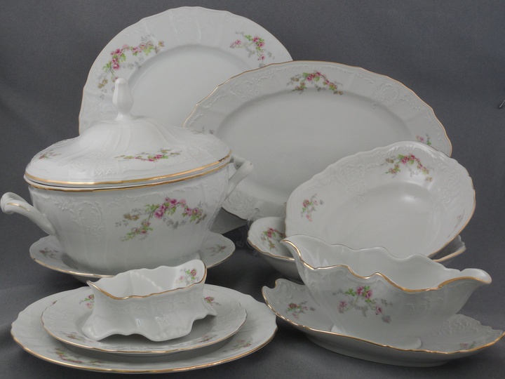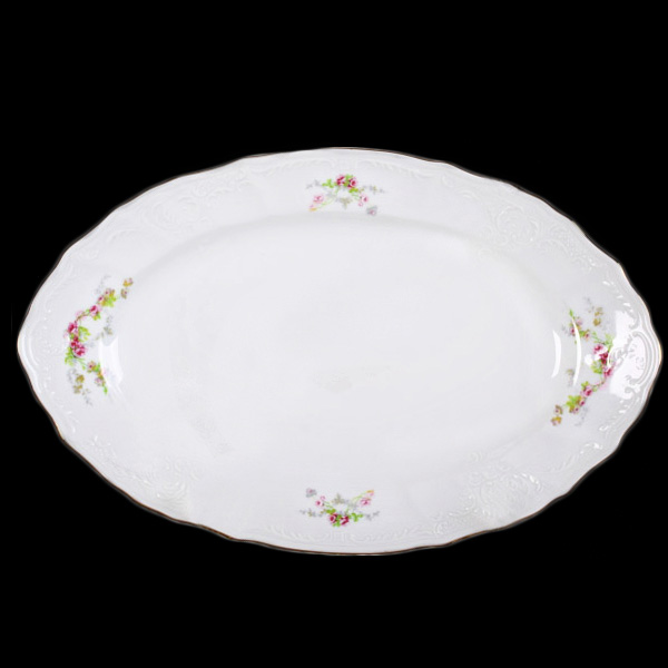 Блюдо овальное белое декорированное Thun Bernadotte Полевой Венок с золотым кантом 34 см