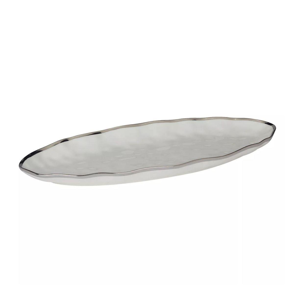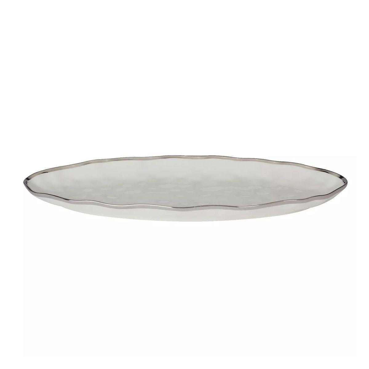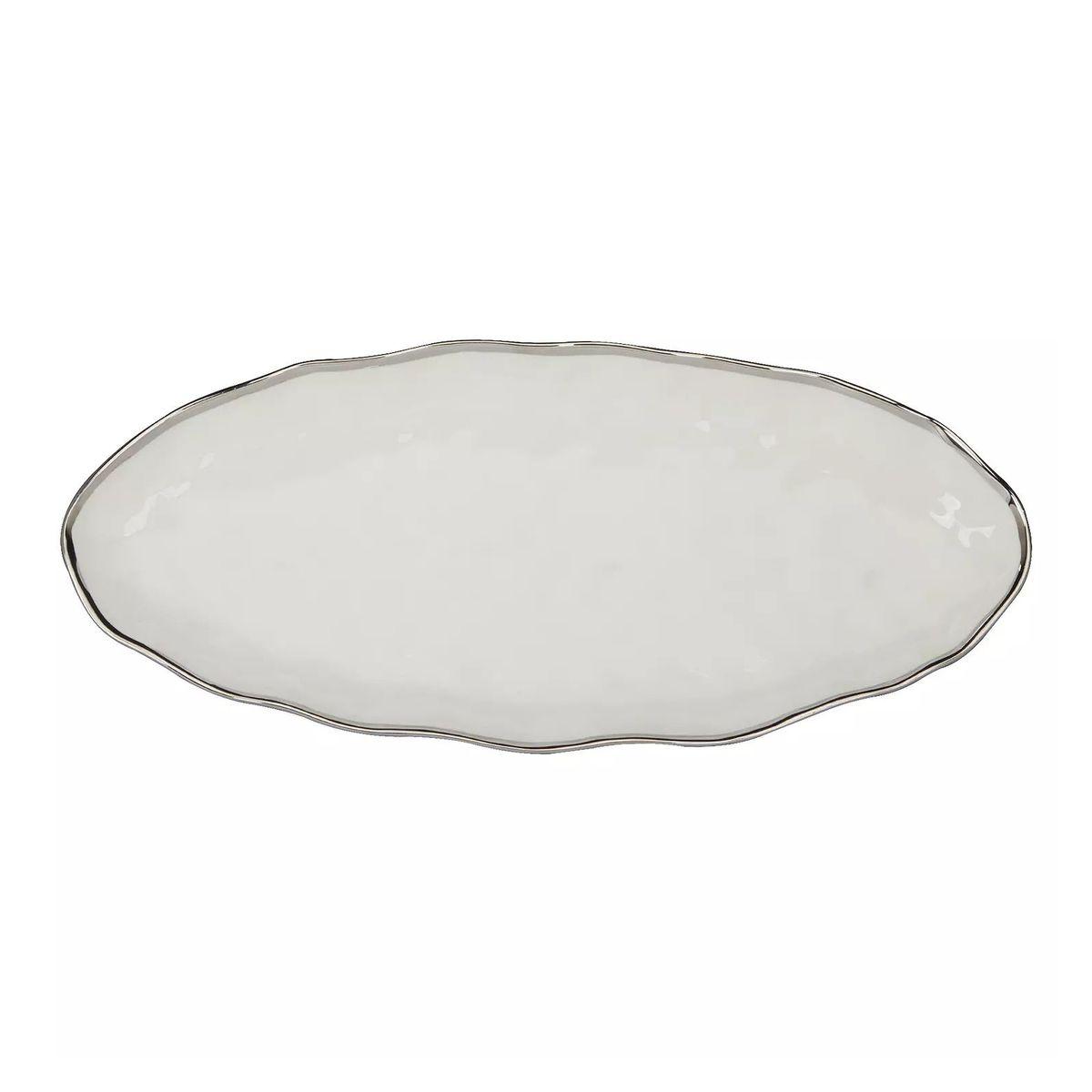 Блюдо овальное белое длинное с серебряным кантом керамика Regency Silver