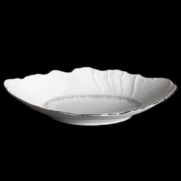 Блюдо овальное фарфоровое белое с серым декором Thun Bernadotte Серебряное Кружево с платиновым кантом 34 см