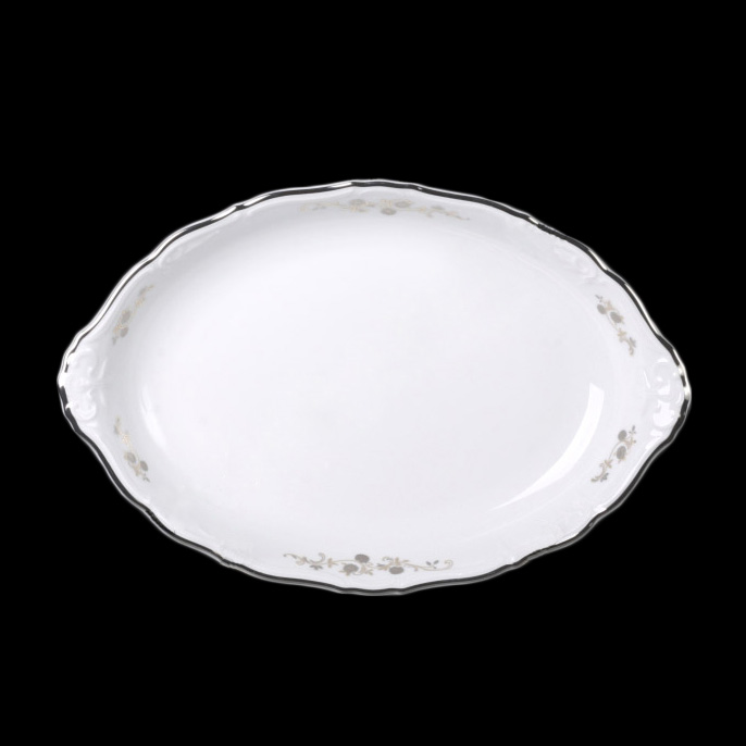 Блюдо овальное фарфоровое Bernadotte Marie-Louise платиновым орнаментом 33 см