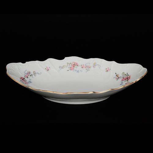 Блюдо овальное фарфоровое декорированное Thun Bernadotte Дикая Роза с золотым окаймлением 34 см