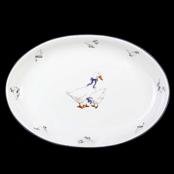 Блюдо овальное фарфоровое с рисунком Thun Saphyr Гуси 34 см с синей окантовкой