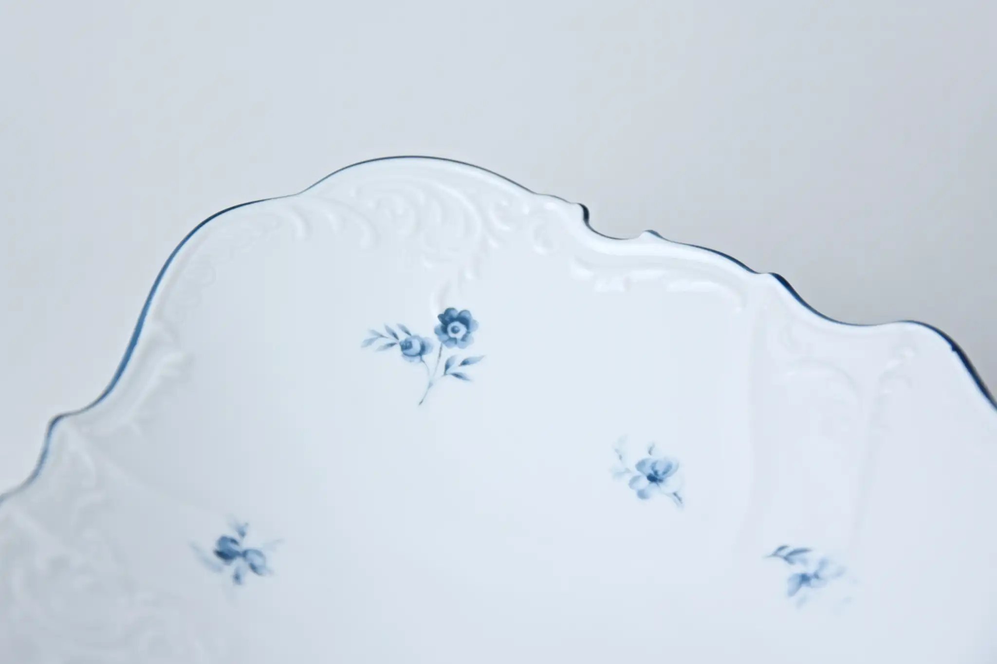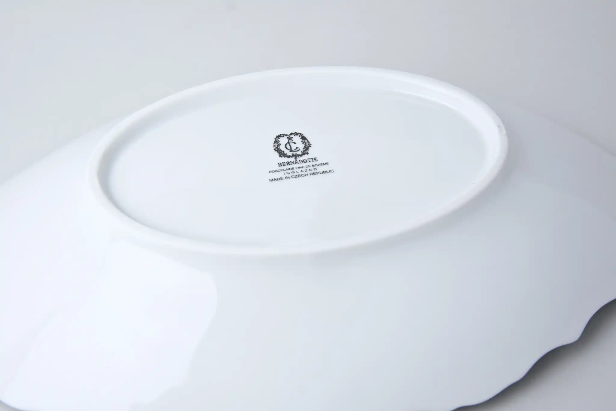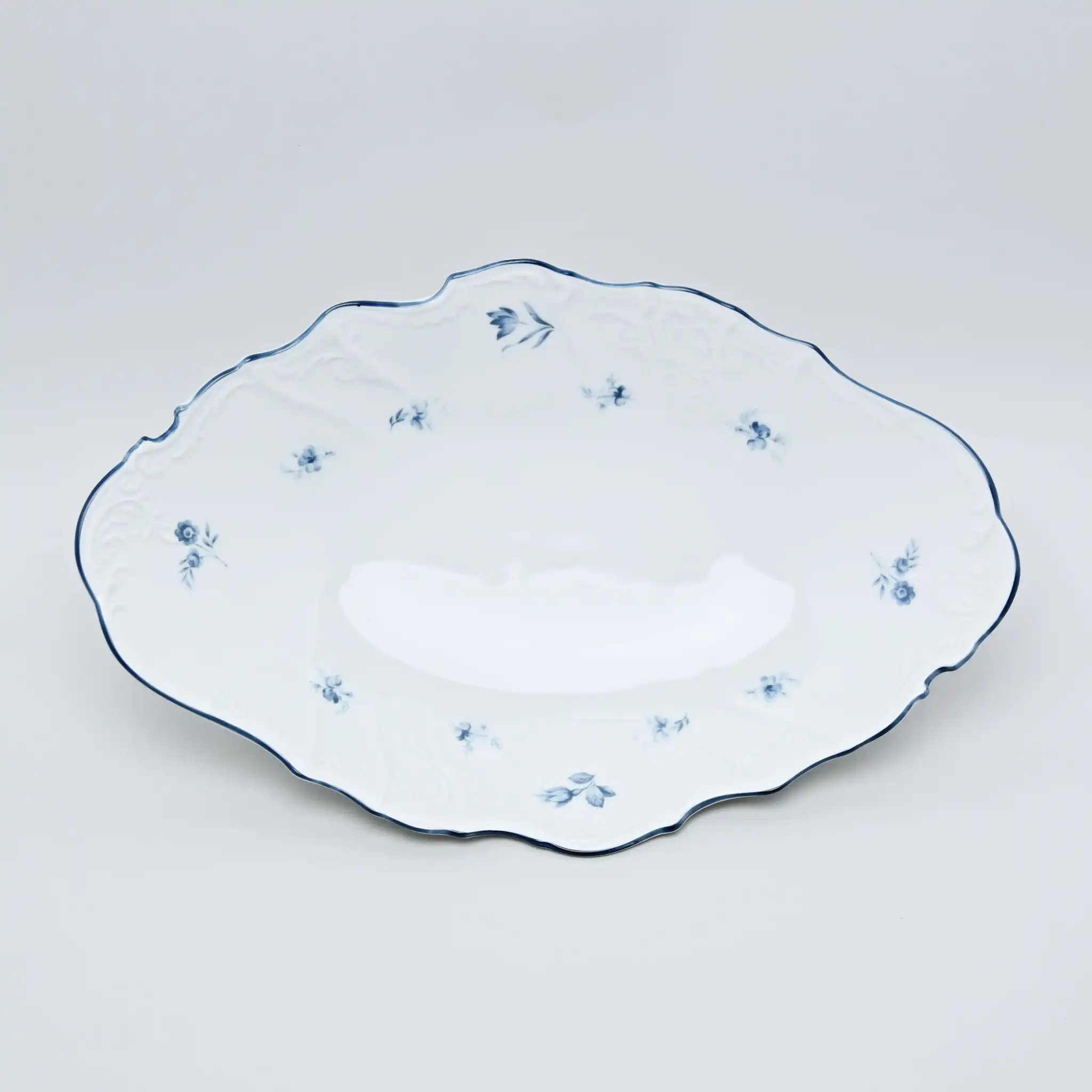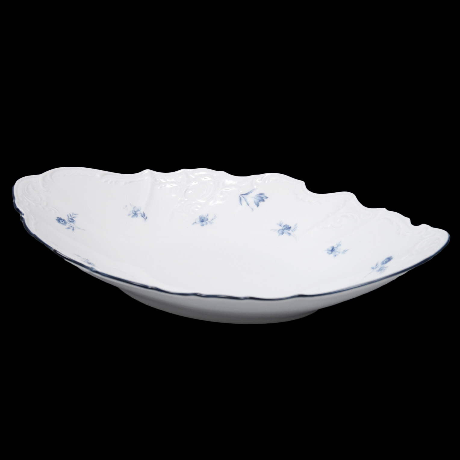 Блюдо овальное фарфоровое Thun Bernadotte Апрельское Цветение с синим орнаментом и кантом 34 см