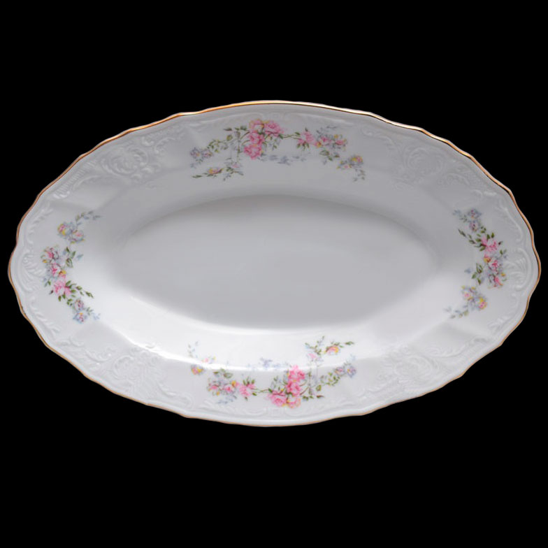 Блюдо овальное мелкое фарфоровое белое с цветным декором Thun Bernadotte Дикая Роза 24 см