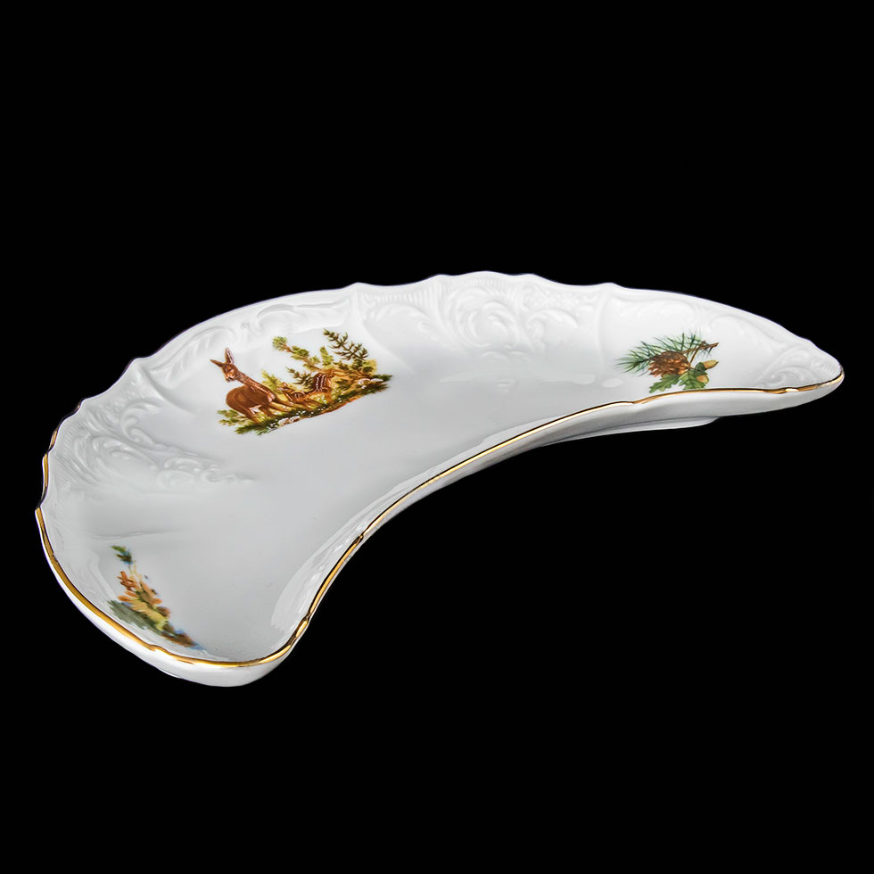 Блюдо-півмісяць кольорове Bernadotte "Полювання" із золотою облямівкою 23×10 см