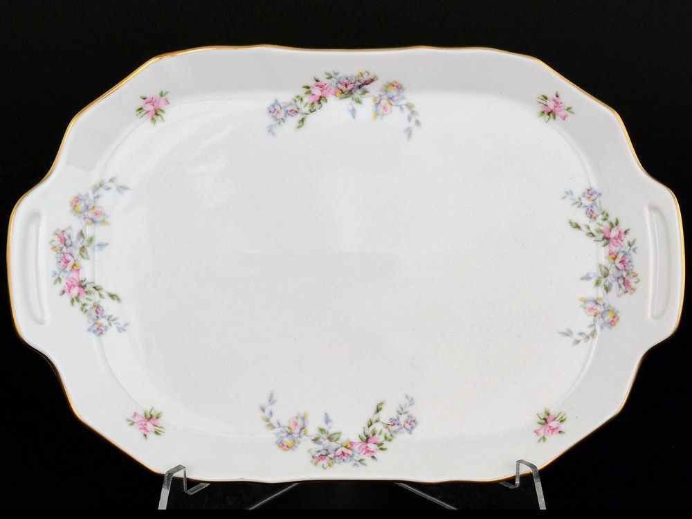 Блюдо-поднос фарфоровое прямоугольное белого цвета с декором Thun Bernadotte Дикая Роза 23 см