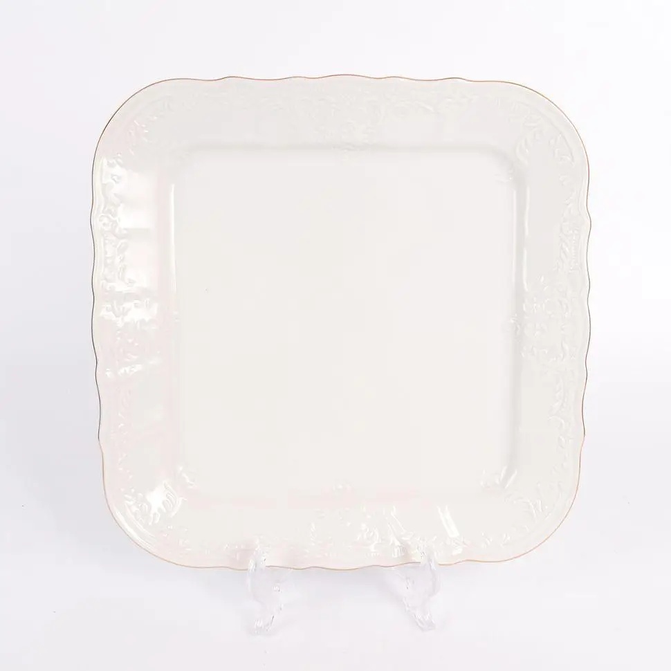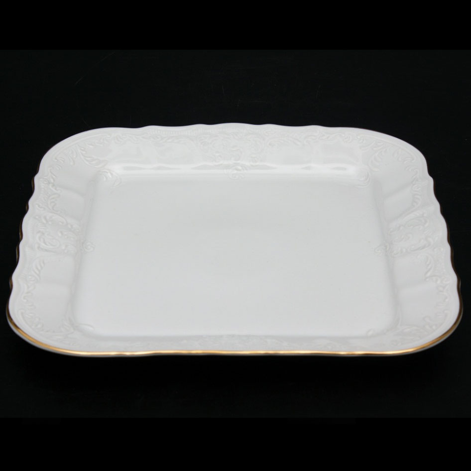 Блюдо-поднос фарфоровый квадратный белого цвета с золотым кантом Thun Bernadotte Обводка Золото 26 см