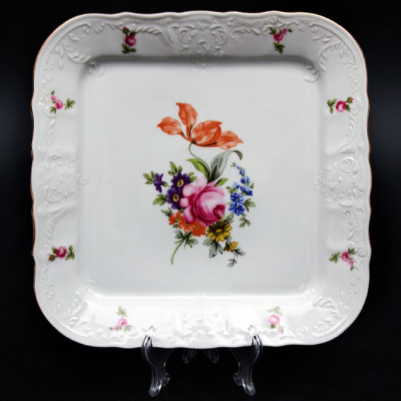Блюдо-поднос квадратное Мейсенский букет 26 см