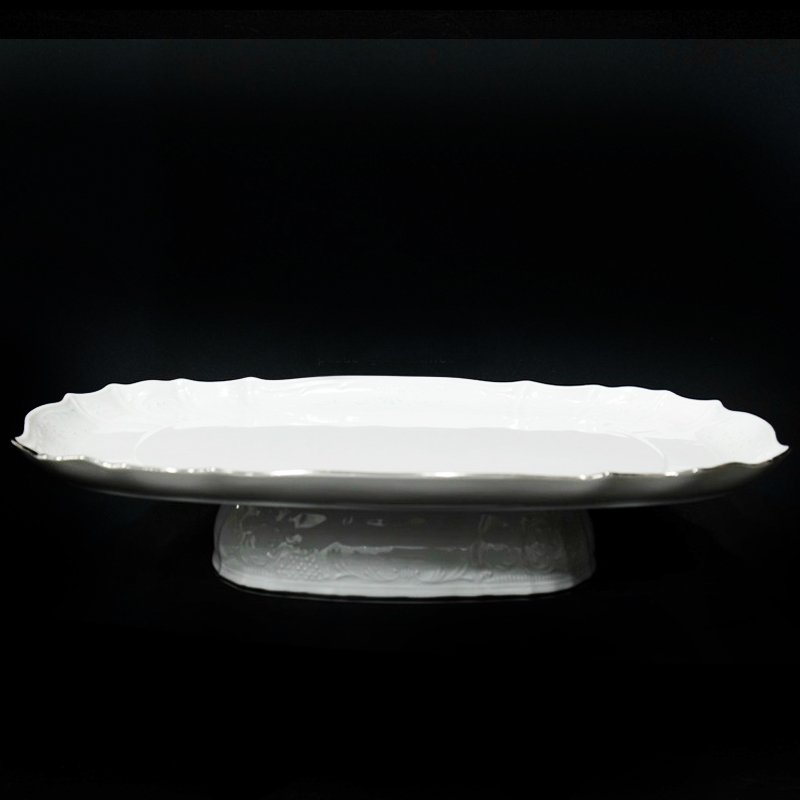 Блюдо-поднос прямоугольное фарфоровое белого цвета с платиновой обводкой и узорчатым орнаментом Bernadotte Невеста 40 см