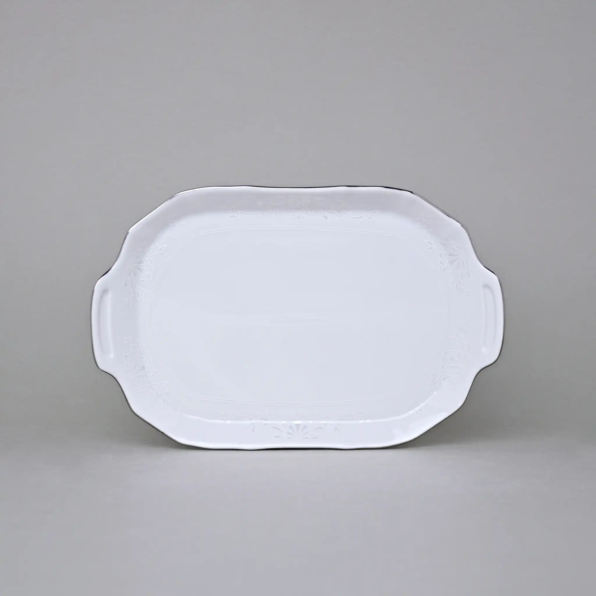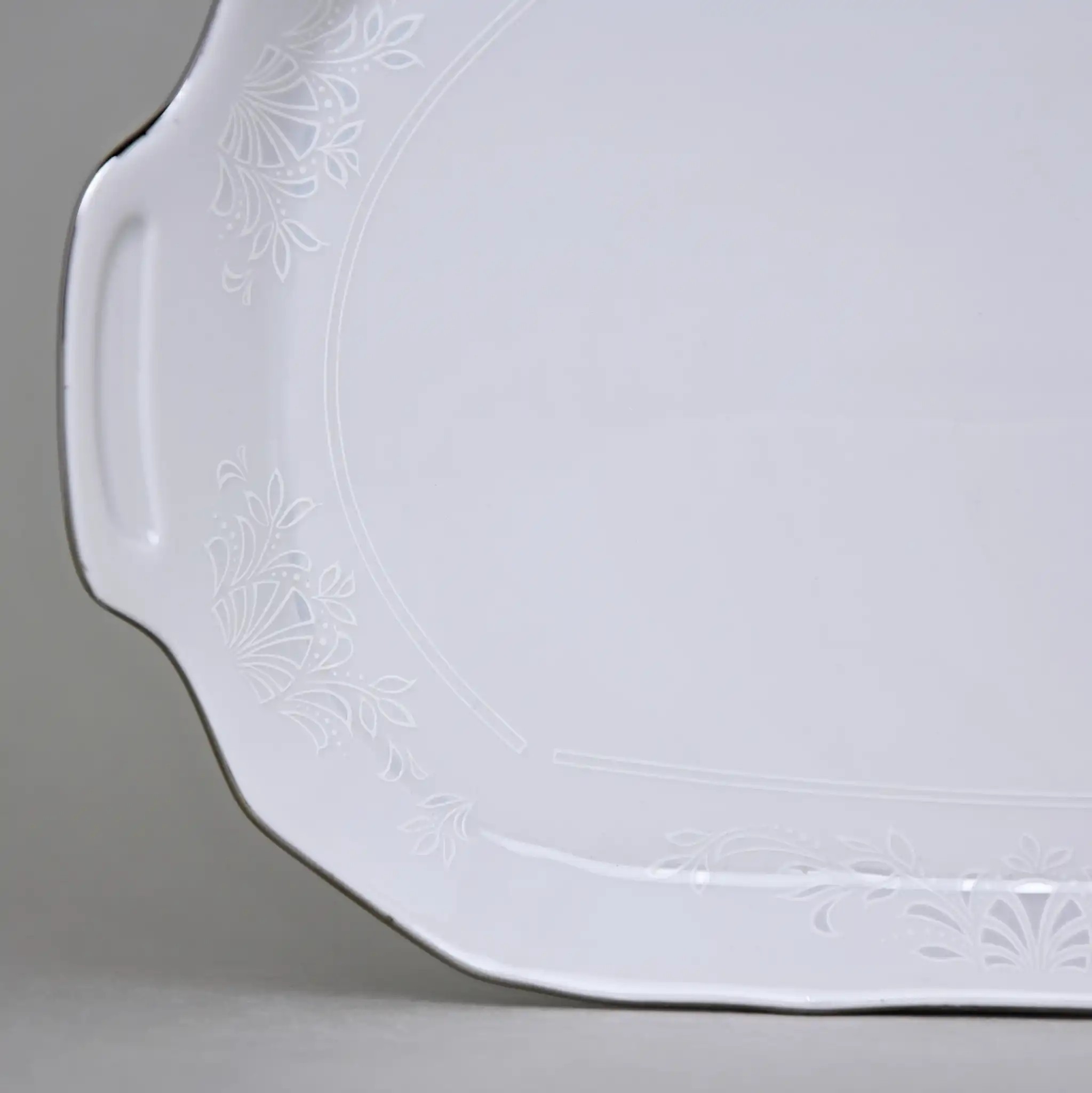 Блюдо-поднос прямоугольное фарфоровое белого цвета с платиновым окаймлением Thun Bernadotte Невеста 23 см
