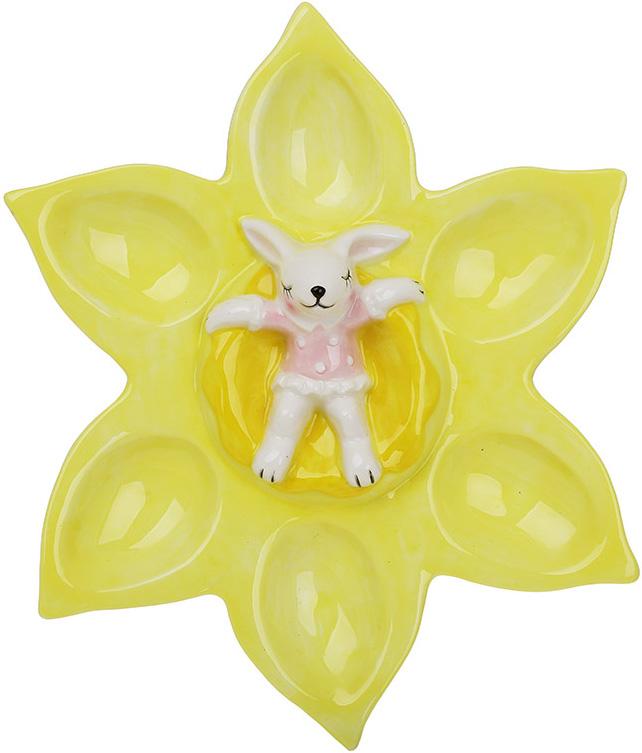 Блюдо-подставка для 6 яиц керамическое желтое "Home & Spring" Ø22см
