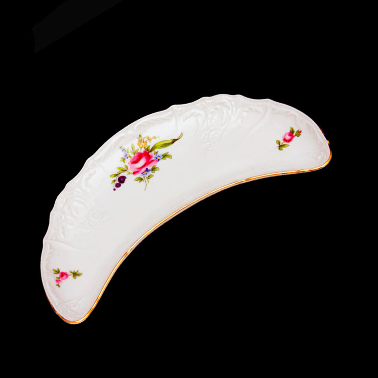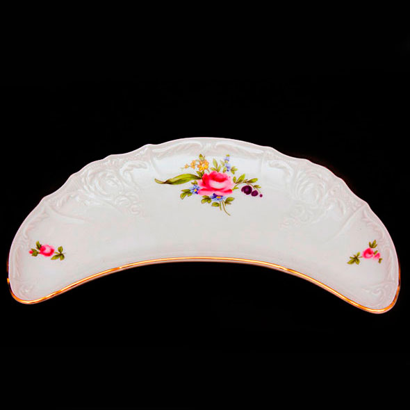 Блюдо-«півмісяць» кольорове Thun Bernadotte Мейсенський Букет із золотим обідком 23x10 см