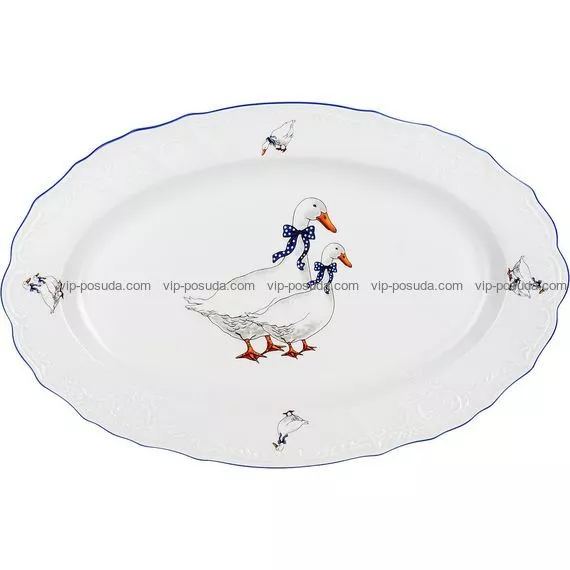 Блюдо порцелянове овальне біле Bernadotte Гуси з темним обідком 36 см