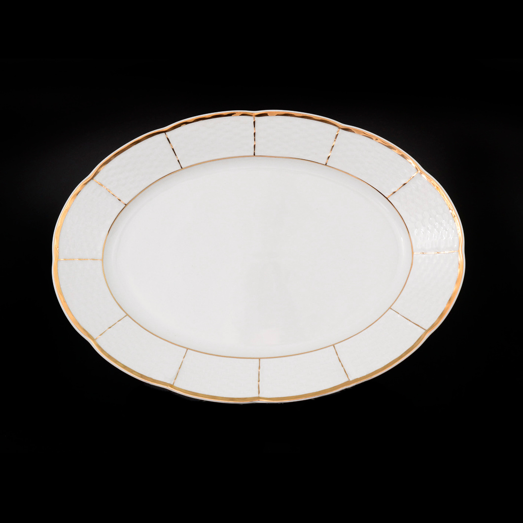 Блюдо порцелянове овальне біле Thun Menuet 21 см с золотим кантом