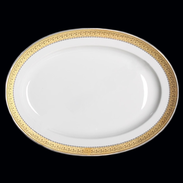 Це не просто посуд — це витвір, який додає родзинку кожній страві. Ідеально для сервірування запеченої риби, м’яса, овочевих делікатесів або фруктів. Овальна форма надає витонченості, а золотий орнамент додає урочистості.