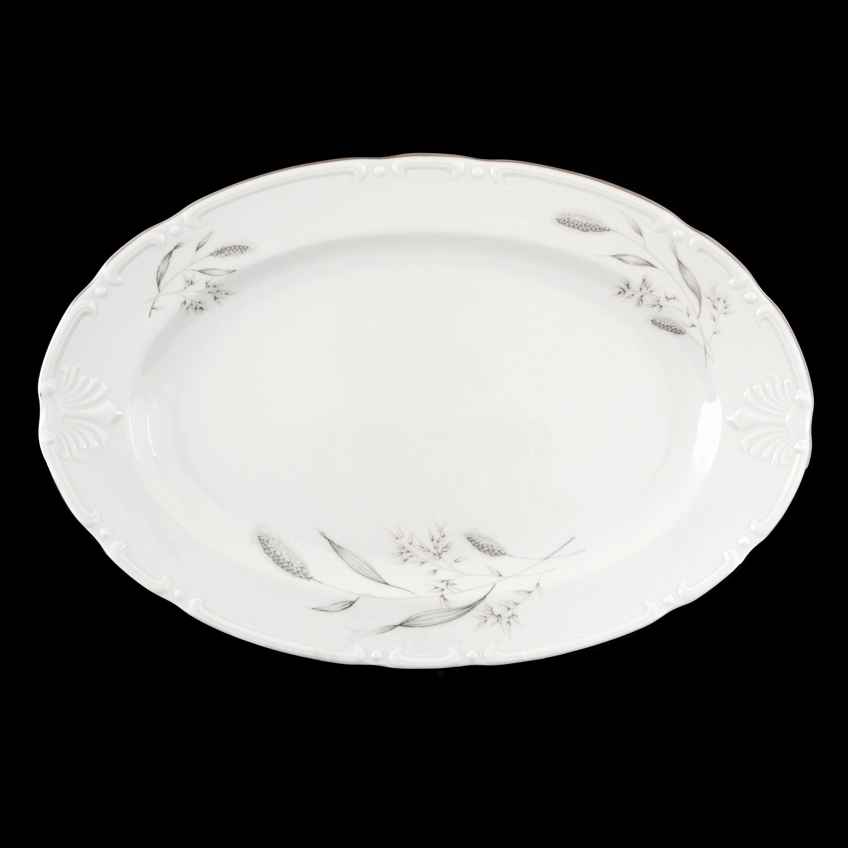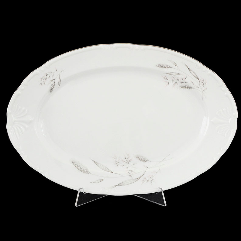 Блюдо порцелянове овальне біле з декором Thun Constance Срібні Колосся 32 см