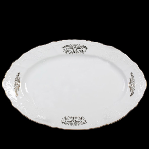 Овальні блюда різних розмірів (24, 26, 34 і 36 см) ідеально підходять для подачі гарячих страв, риби, запеченого м'яса, овочів-гриль. Наявність різних розмірів дає змогу сервірувати весь стіл у єдиному стилі, створюючи гармонію композиції. Найбільша з них - це справжня «парадна» страва для сімейних свят.