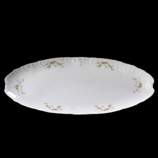 Блюдо рыбное овальное белое декорированное Thun Bernadotte Полевой Венок с золотой каёмочкой 52 см