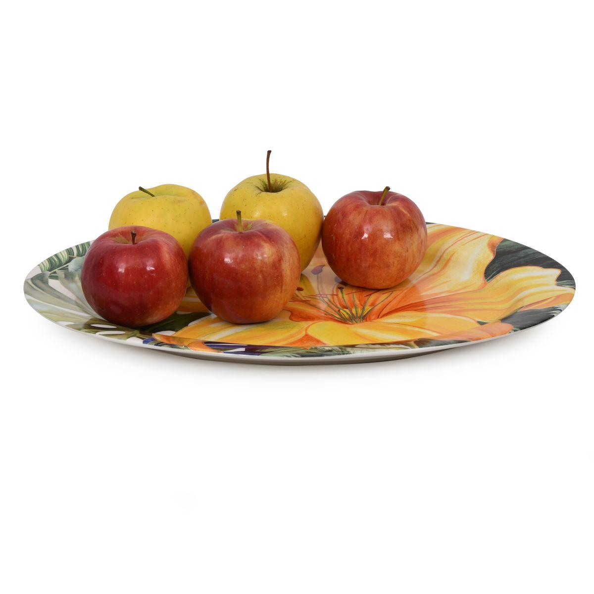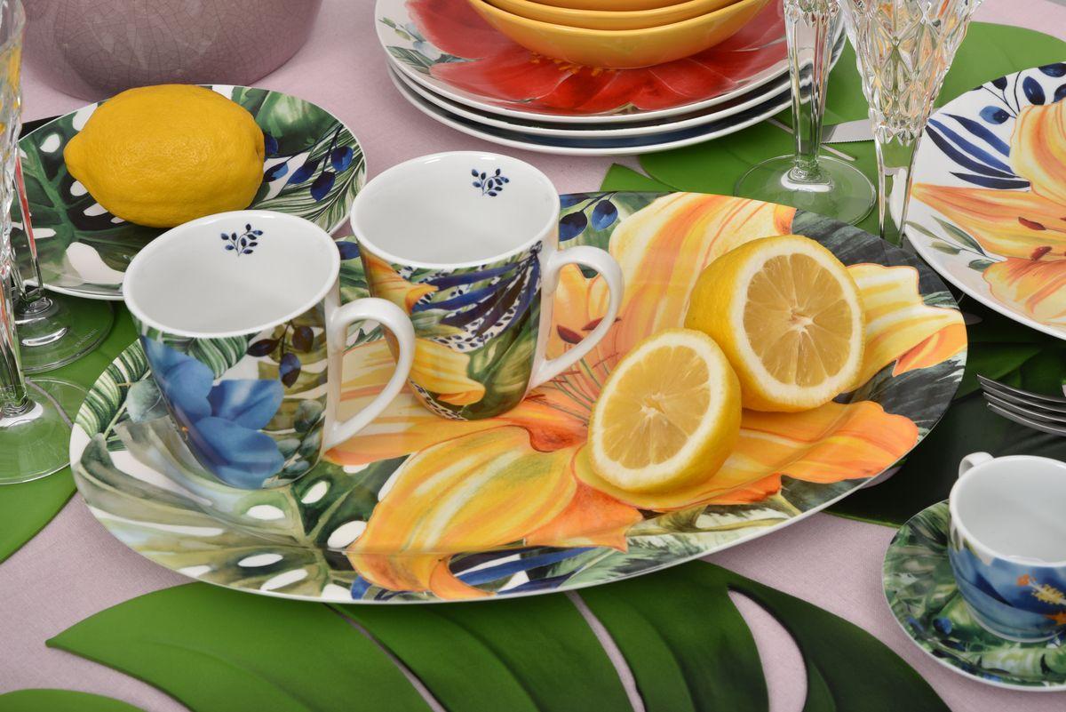 Прочный фарфор делает изделие долговечным, а гладкая глянцевая поверхность подчёркивает насыщенность красок. Удобный овальный формат (40×28 см) идеально подходит для подачи фруктов, десертов или горячих блюд. Блюдо станет ярким подарком для тех, кто ценит эстетику, природу и атмосферу юга.