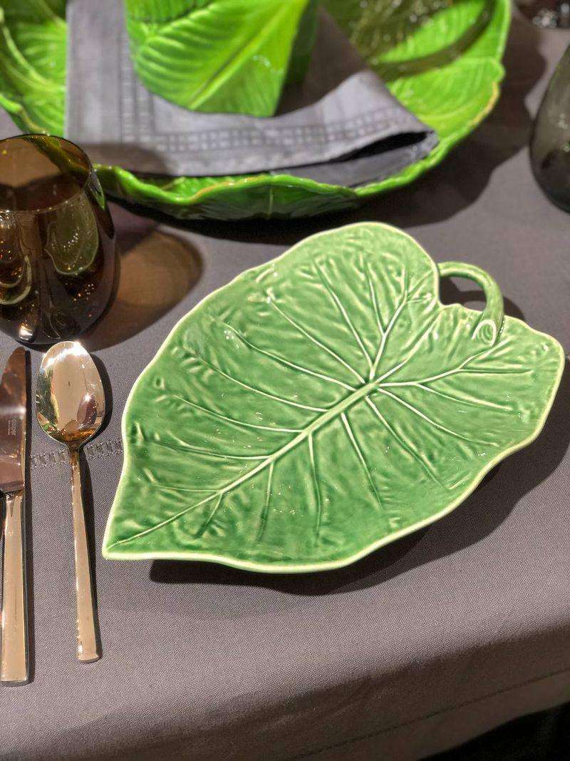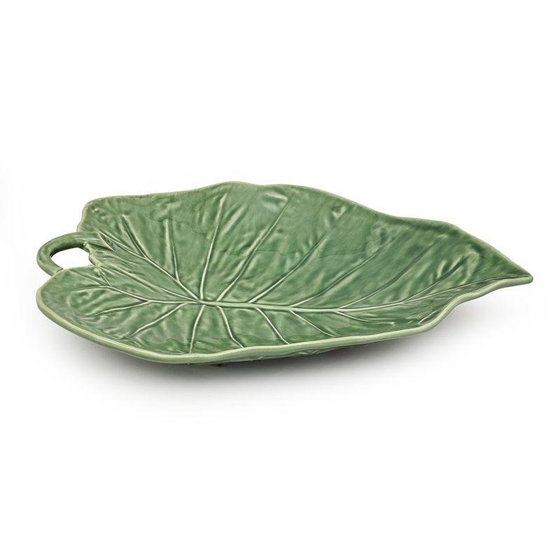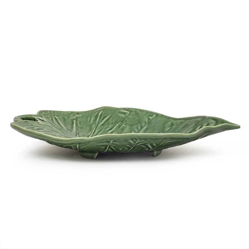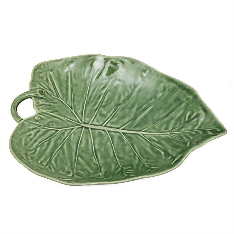 Это сервировочное блюдо в форме листа подсолнуха выполнено из прочной керамики и имеет размеры 31×21×4 см. Его глубокая зелёная глазурь красиво подчёркивает натуральный рельеф листа. Такая форма удобна для подачи салатов, закусок или фруктов на праздничный или повседневный стол. Блюдо особенно эффектно смотрится в сочетании со светлым текстилем или натуральным деревом. Оно легко моется и подходит для ежедневного использования. Этот стильный аксессуар добавит вашей сервировке свежести и природной эстетики.