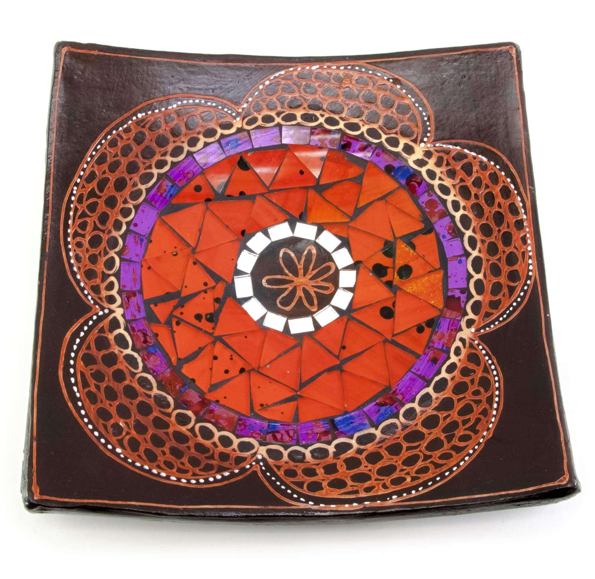 Блюдо теракотове з мозаїкою 19х19х4 см