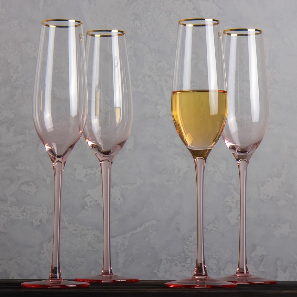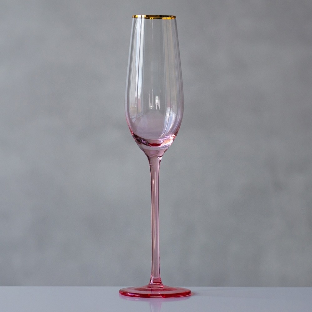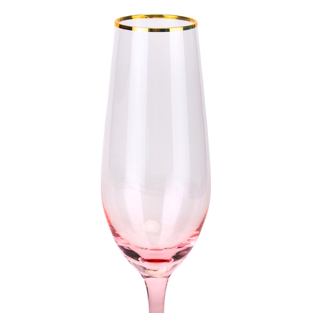 Бокал для шампанского стеклянный розовый с золотой обводкой Барбара 200 мл