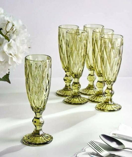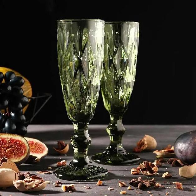 Бокал для шампанского стеклянный зеленый Olens Изумруд 150 мл