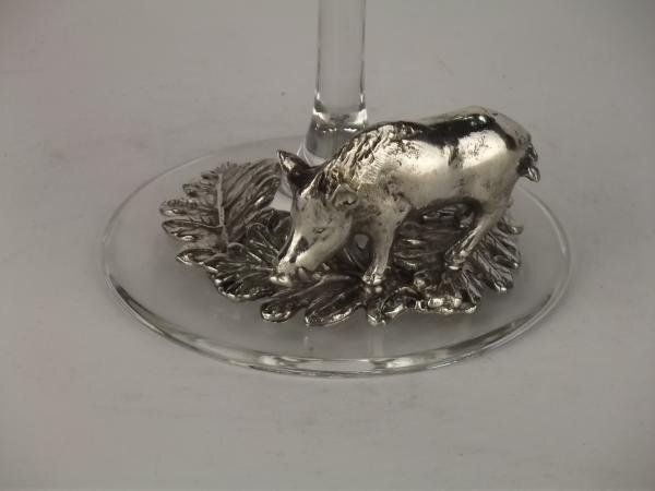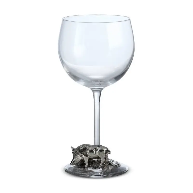 Брутальность и изящество слились в одном произведении — бокале для вина "Кабан" от Artina SKS. Высотой 20 см и объемом 350 мл, этот бокал выполнен из кристально чистого стекла и дополнен массивной оловянной ножкой с объёмным изображением кабана — символа силы, отваги и первозданной природы.