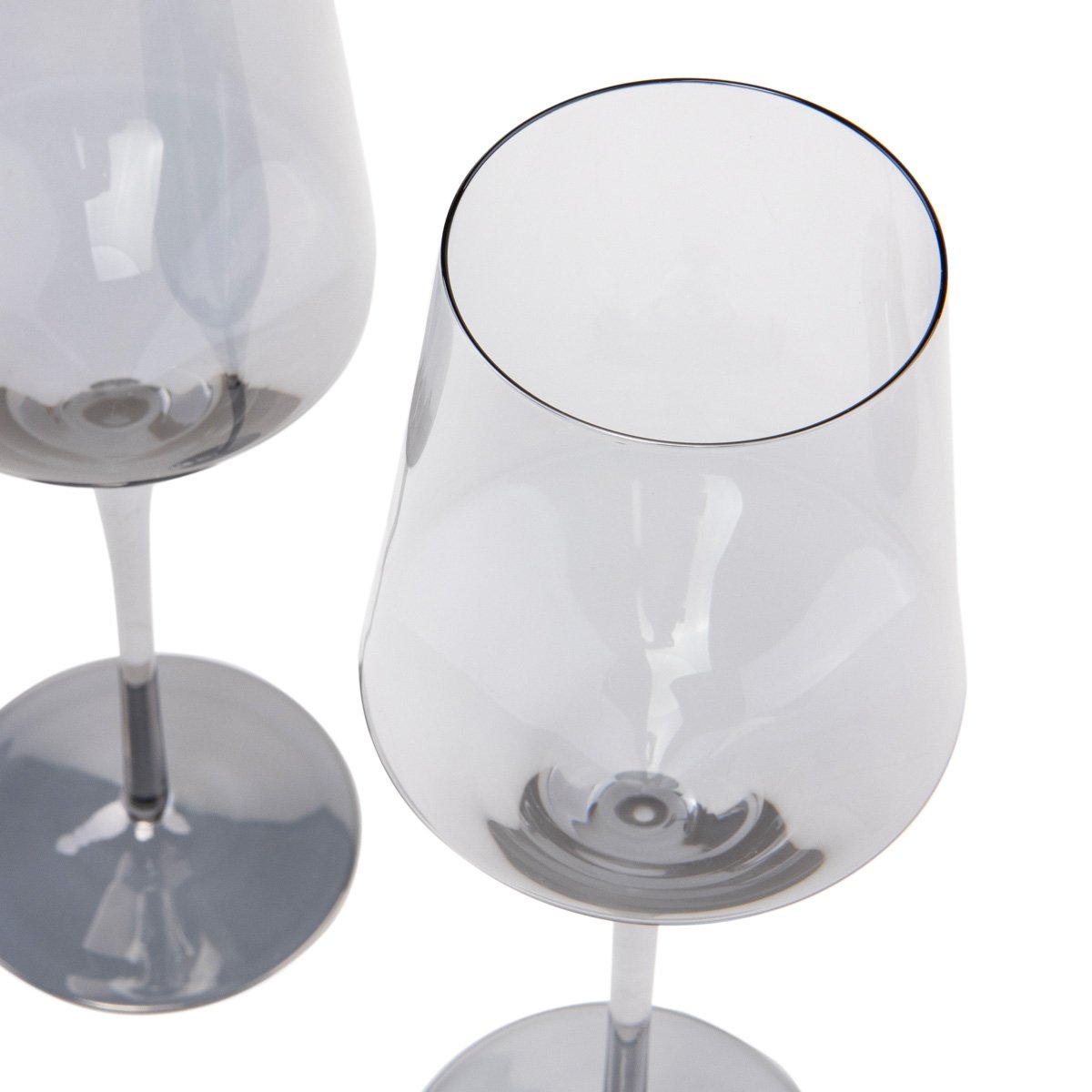 Бокал для вина стеклянный цветной Gemstone - это гармония минимализма и выразительности. Тонкое стекло с деликатным серым оттенком создает ощущение легкости и уюта. Его современная форма с четкими гранями и высокой ножкой делает бокал не только практичным, но и визуально привлекательным.