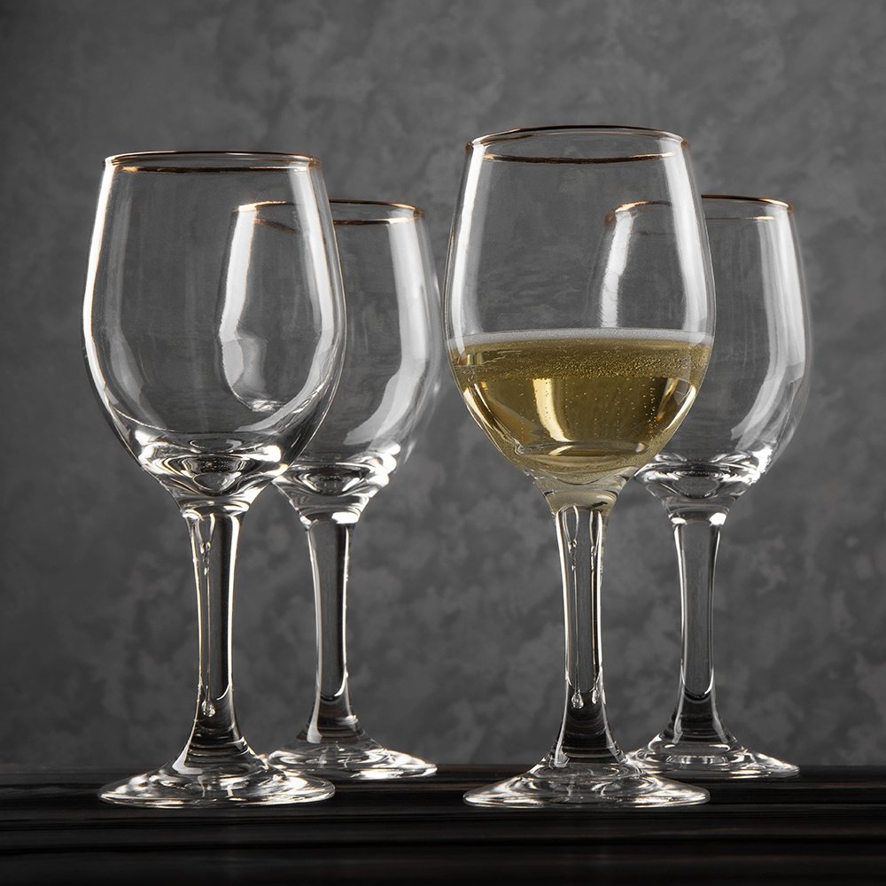 Виготовлений із якісного прозорого скла, келих чудово передає колір напою та його текстуру. Тонка золота облямівка додає вишуканості та робить сервірування святковим навіть у будні.