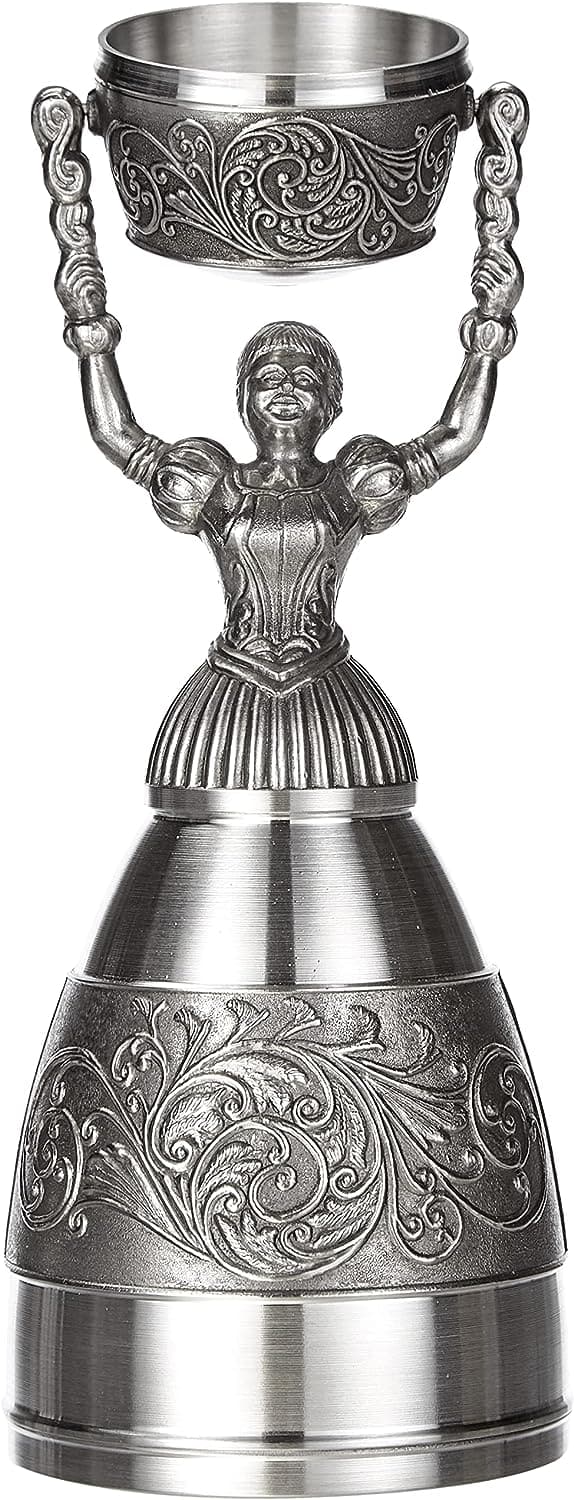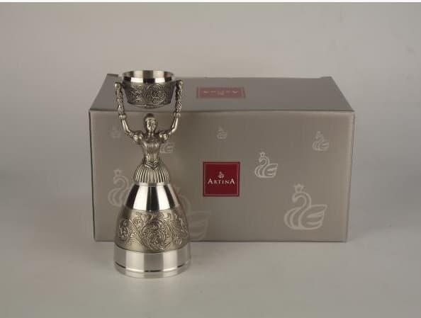 Келих Нареченої складається з 2-х суміщених частин (стопка + келих). Наливається в обидві частини нареченому та нареченій, які вони мають випити одночасно. Виготовлений із харчового олова вищої марки майстрами відомої австрійської компанії Artina. Келих не іржавіє, не піддається корозії і виглядає чудово. Барельєф на зовнішніх стінках, вензелі та орнаменти, роблять келих ще більш урочистим. На гладкому обід внизу можна нанести гравіювання із зазначенням дати весілля. Кожен виріб ARTINA виготовлений із олов'яного сплаву з вмістом олова не менше 95% та безпечний для їжі та напоїв. Підтверджено знаком ARTINA (торговельною маркою) на кожному окремому предметі – таким чином, це гарантія та безпека одночасно.