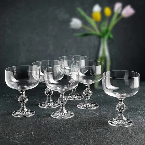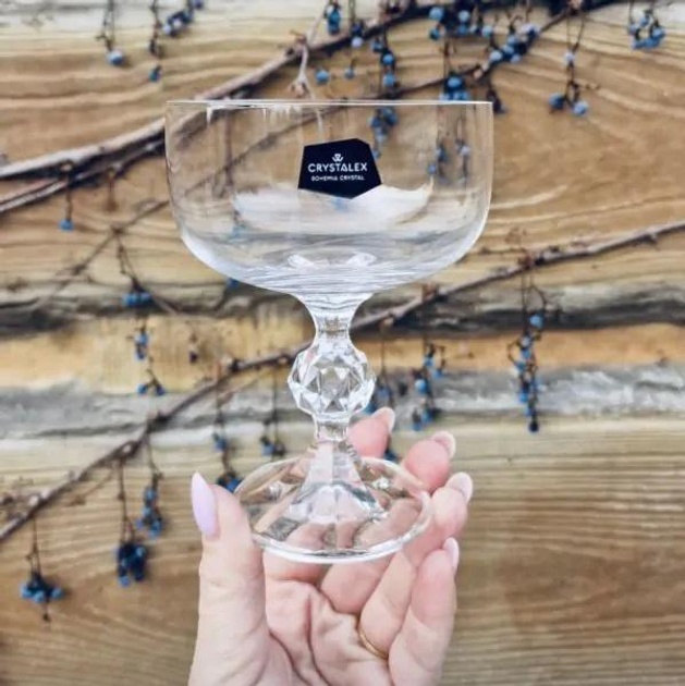 Набор бокалов/креманок станет изысканным украшением вашего праздничного стола. Бокал для мартини и коктейля имеет чашевидную треугольную форму. Эта форма имеет противоположный эффект, чем бокалы для игристого вина. Он способствует более быстрому выпуску пузырьков из напитков и в гораздо большей степени, чем любой другой стакан, передает аромат напитка окружающей среде. Именно поэтому в этом стакане часто подают коктейли и вермуты, например, Мартини Драй, украшенный оливками, Чинзано с цедрой лайма или знаменитый Cosmopolitan. Часто перед приготовлением коктейля бокал необходимо специально подготовить. Например, его хранят влажным в морозильной камере в течение нескольких часов, чтобы на поверхности чашки образовался тонкий слой льда, или край стекла смазывают лимоном, а затем посыпают сахаром. Бокал для мартини всегда должен быть идеально чистым и отполированным, без остатков моющих средств и воды. Очки поставляются в подарочной упаковке.