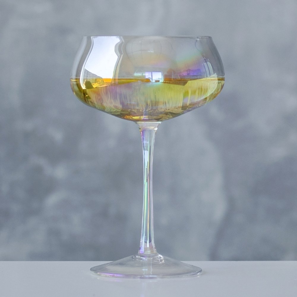 Стеклянный бокал для мартини объёмом 200 мл с перламутровым покрытием — это воплощение утончённого вкуса и стиля. Его округлая чаша излучает лёгкое радужное сияние, которое играет на свету и придаёт сервировке изысканный характер. Такой бокал подчёркивает не только вкус напитка, но и атмосферу момента — будь то вечер для двоих, праздничный тост или изящный коктейль на приёме.