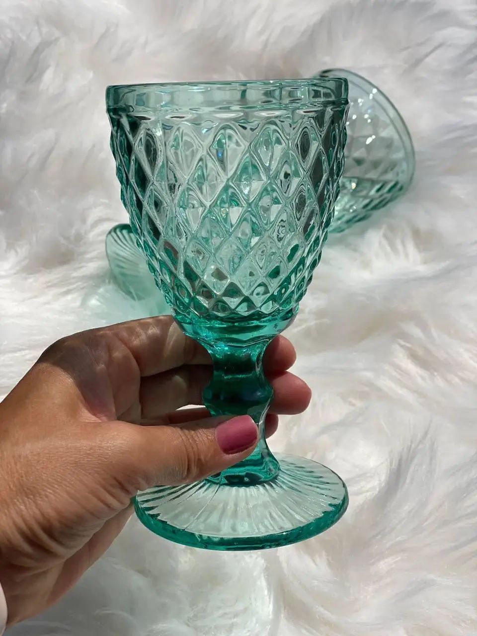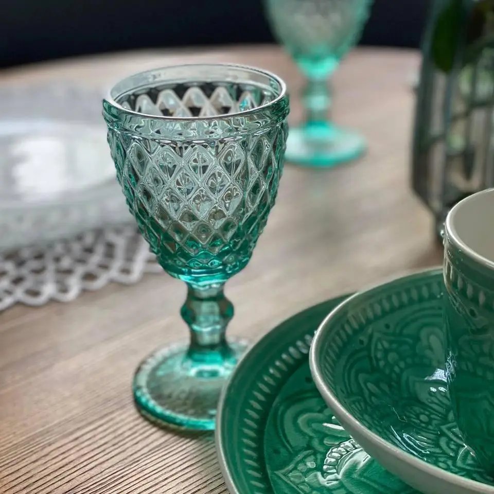 Бірюзовий келих «Кедр-міні» — це ковток свіжості у скляному виконанні. Насичений колір разом із вишуканим алмазним візерунком створює гру світла, яка дивує з першого погляду.