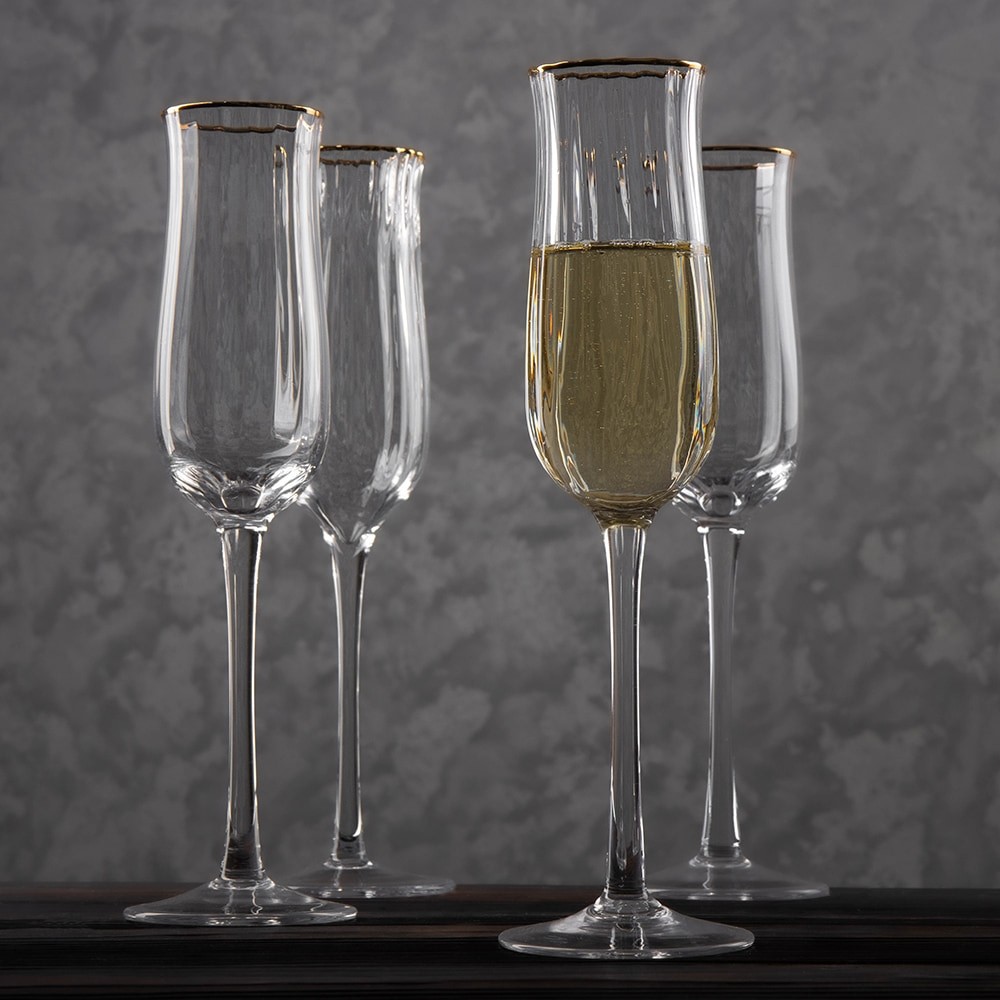 Бокалы для шампанского с золотой каймой Gleam Line 130 мл/4 шт