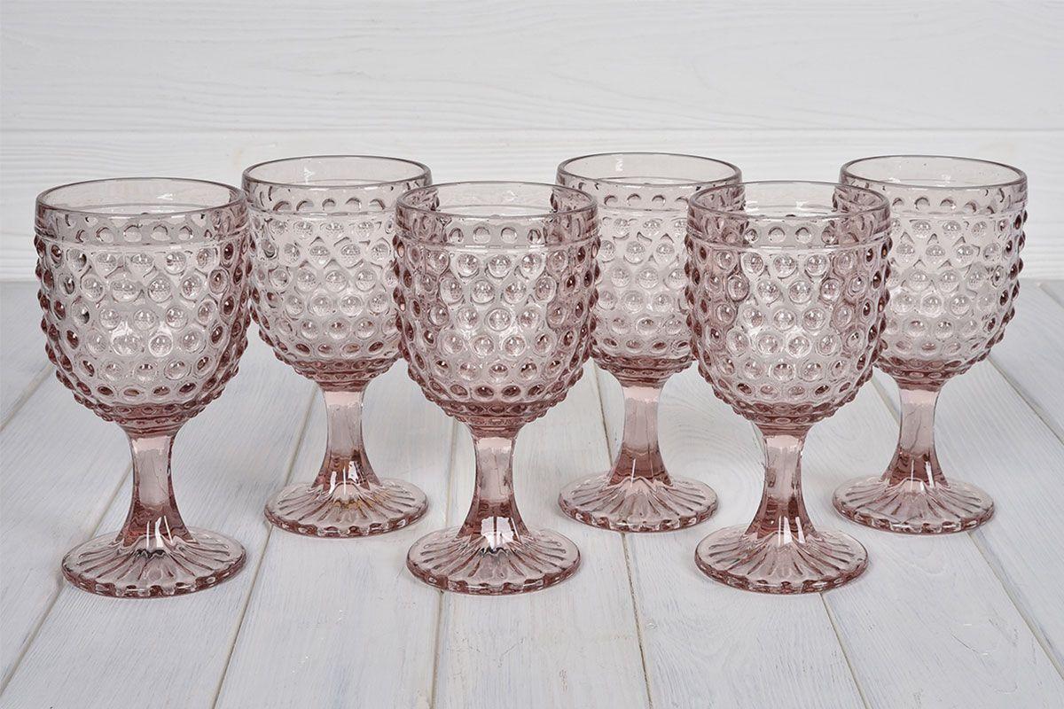 Бокалы для вина стеклянные розовые Ибица 300 мл/ 6 шт