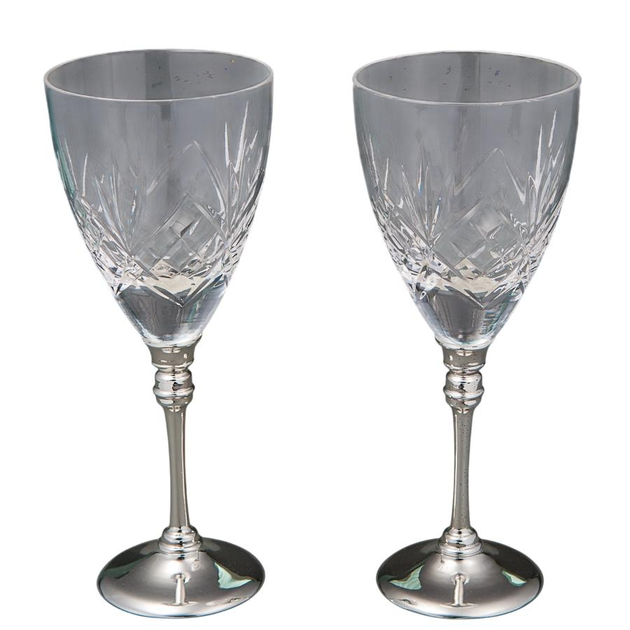 Бокалы свадебные хрустальные для напитков «Персия» на 2 человека - это воплощение утонченности и благородного вкуса. Прозрачная хрустальная чаша с изящной алмазной огранкой завораживает игрой света и делает каждый глоток особенно торжественным. Изделия дополнены устойчивыми серебристыми ножками, которые придают композиции роскошный и праздничный вид.